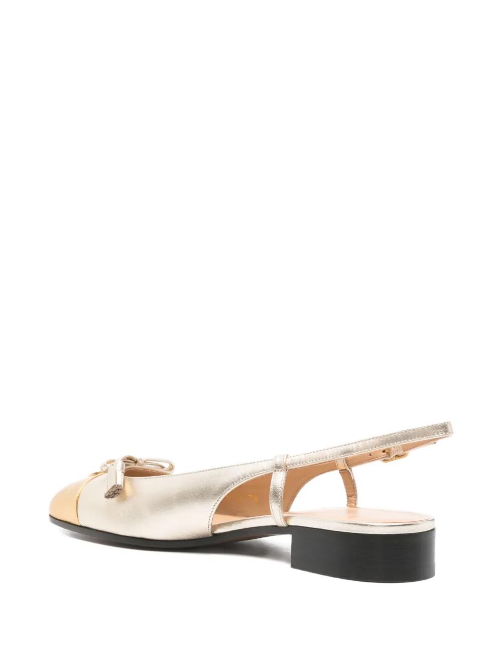silver-tone bow detailing logo detailing slingback strap cap toe