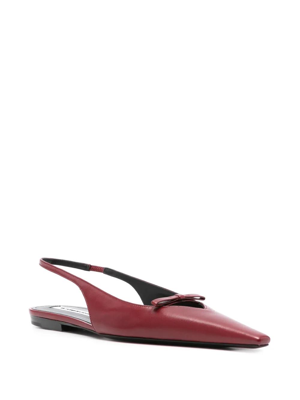 burgundy calf leather slingback strap pointed toe bow detail flat sole