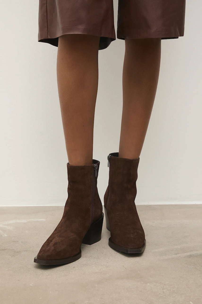 Answear.LAB botki zamszowe kolor brązowy na słupku lekko ocieplone