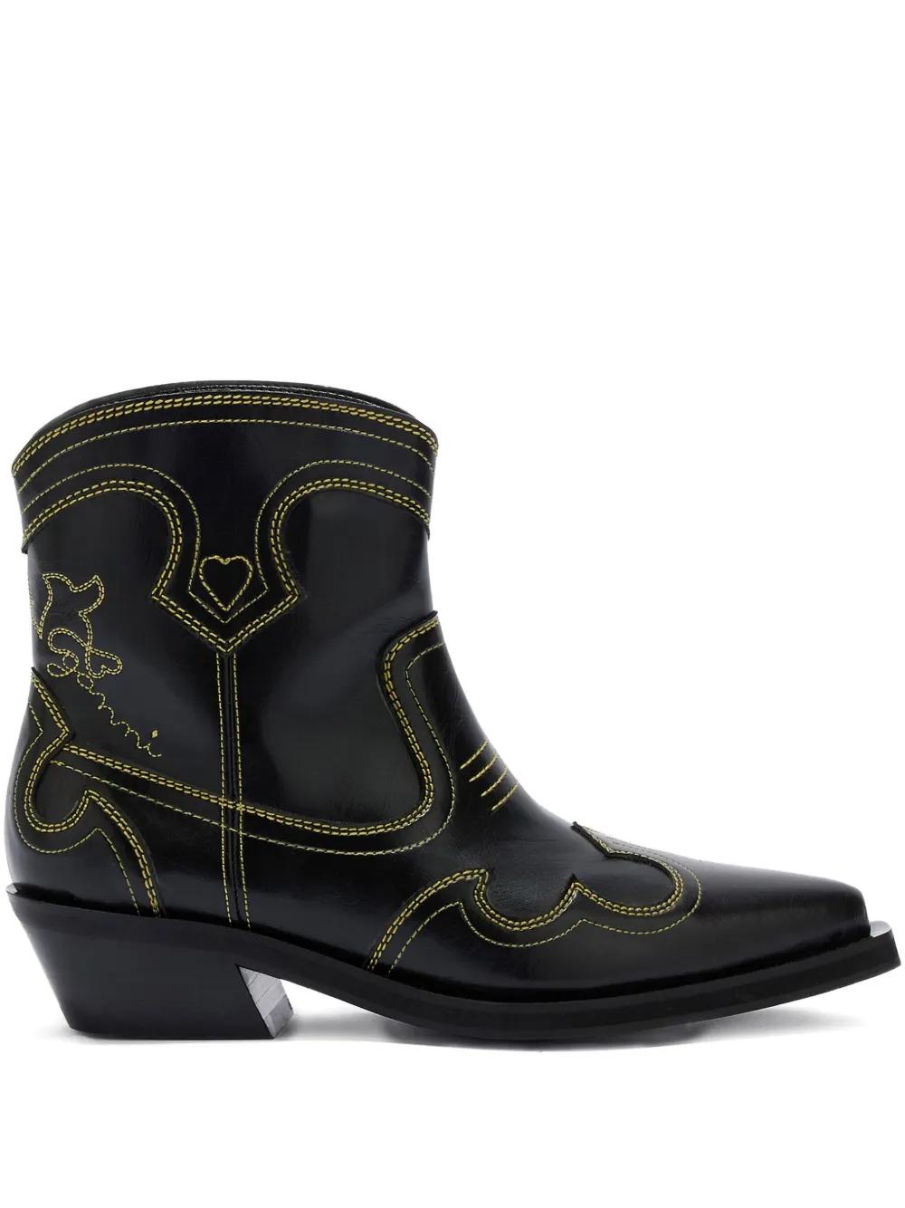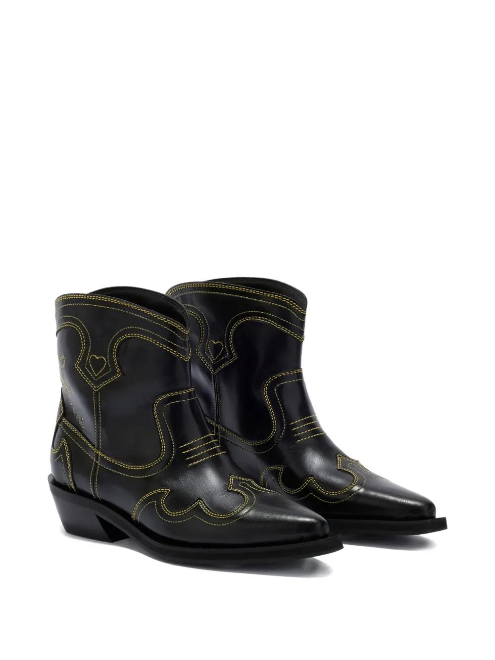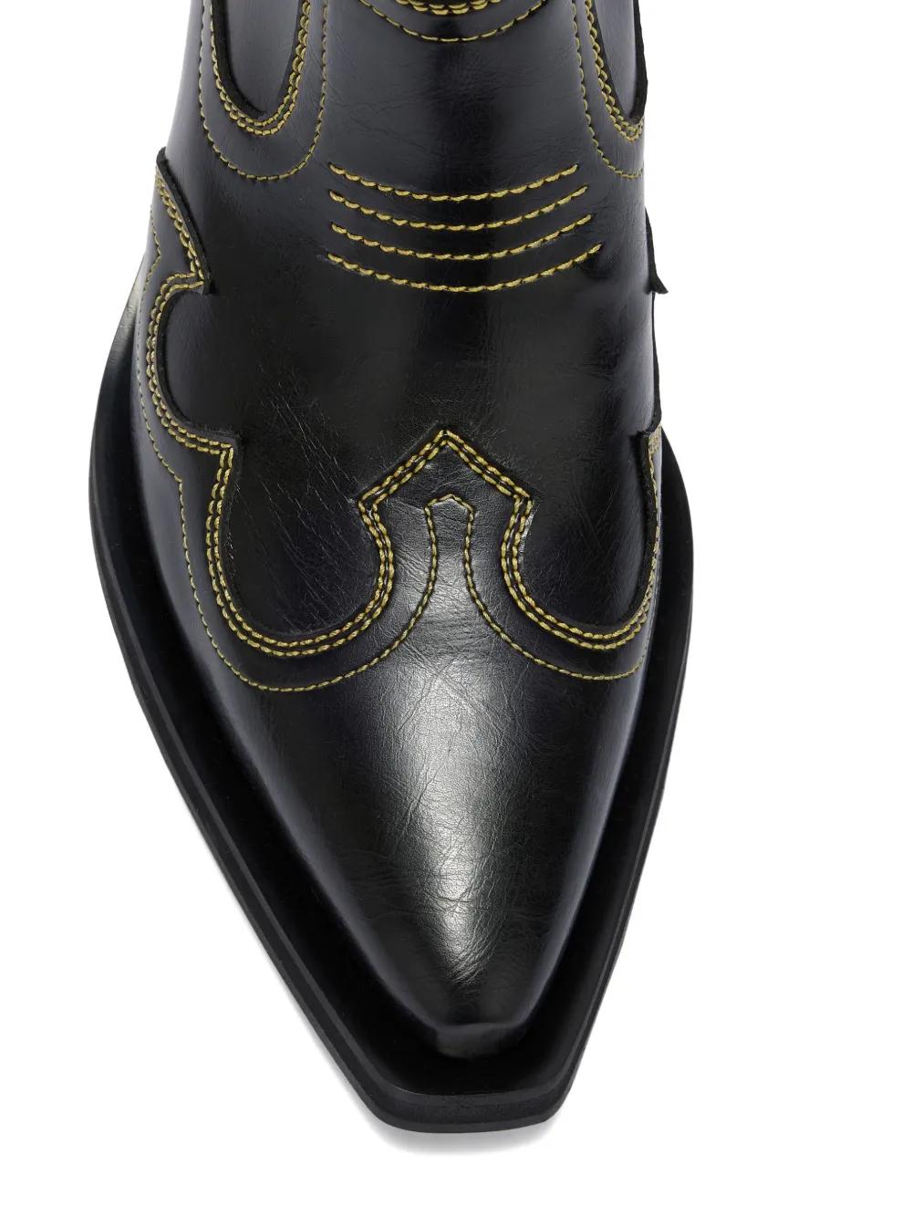 GANNI stitching pointed boots - Black