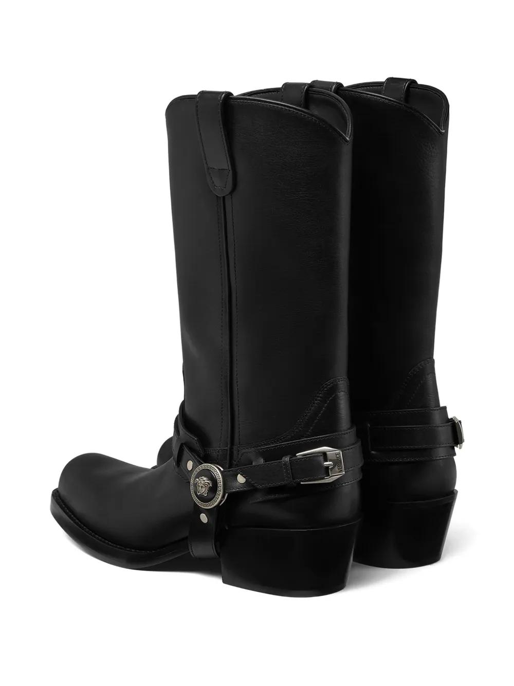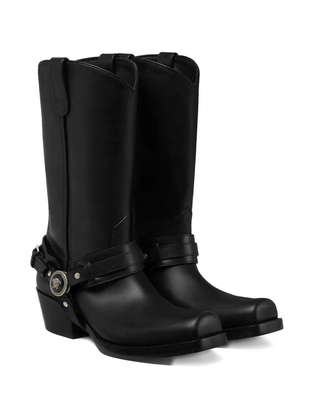Versace leather cowboy boots - Black