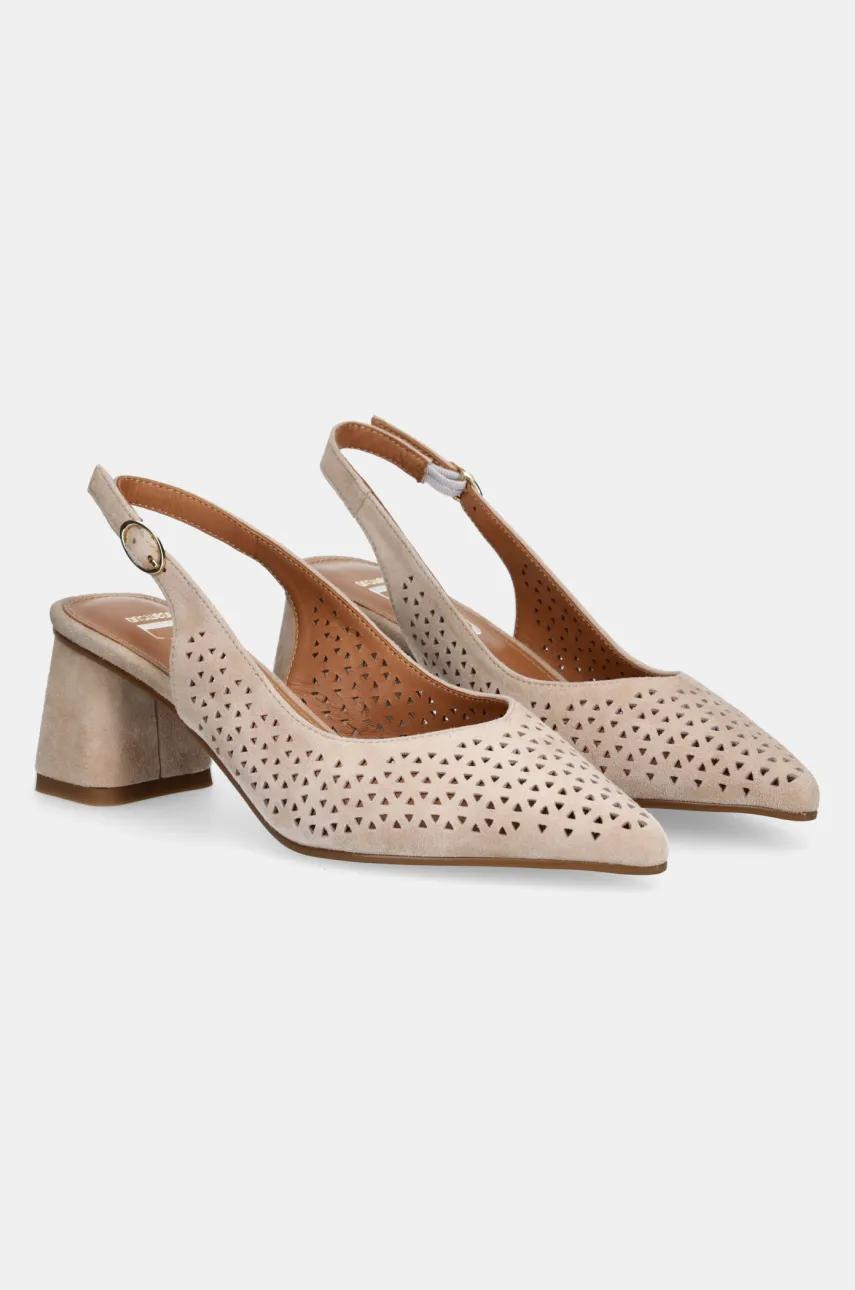 Answear.LAB czółenka zamszowe kolor beżowy na słupku