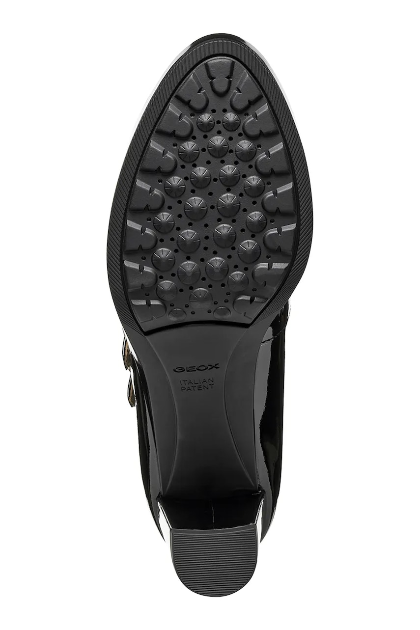- Wkładka Geox: skórzana wkładka z perforacjami wpływa na cyrkulację powietrza wewnątrz buta. Ma właściwości antybakteryjne i oddychające. Dzięki systemowi anti-shock zapewnia jednocześnie odpowiednią amortyzację i komfort. Jest odpowiednio profilowana dla prawidłowego ułożenia stopy. - Okrągły nosek. - Usztywniony zapiętek stabilizuje piętę i utrzymuje stopę w bucie, tak aby nie wysuwała się podczas ruchu. - Zapięcie na dwie klamry ze szpilką, które umożliwia indywidualne dopasowanie. - Model na obcasie typu słupek.