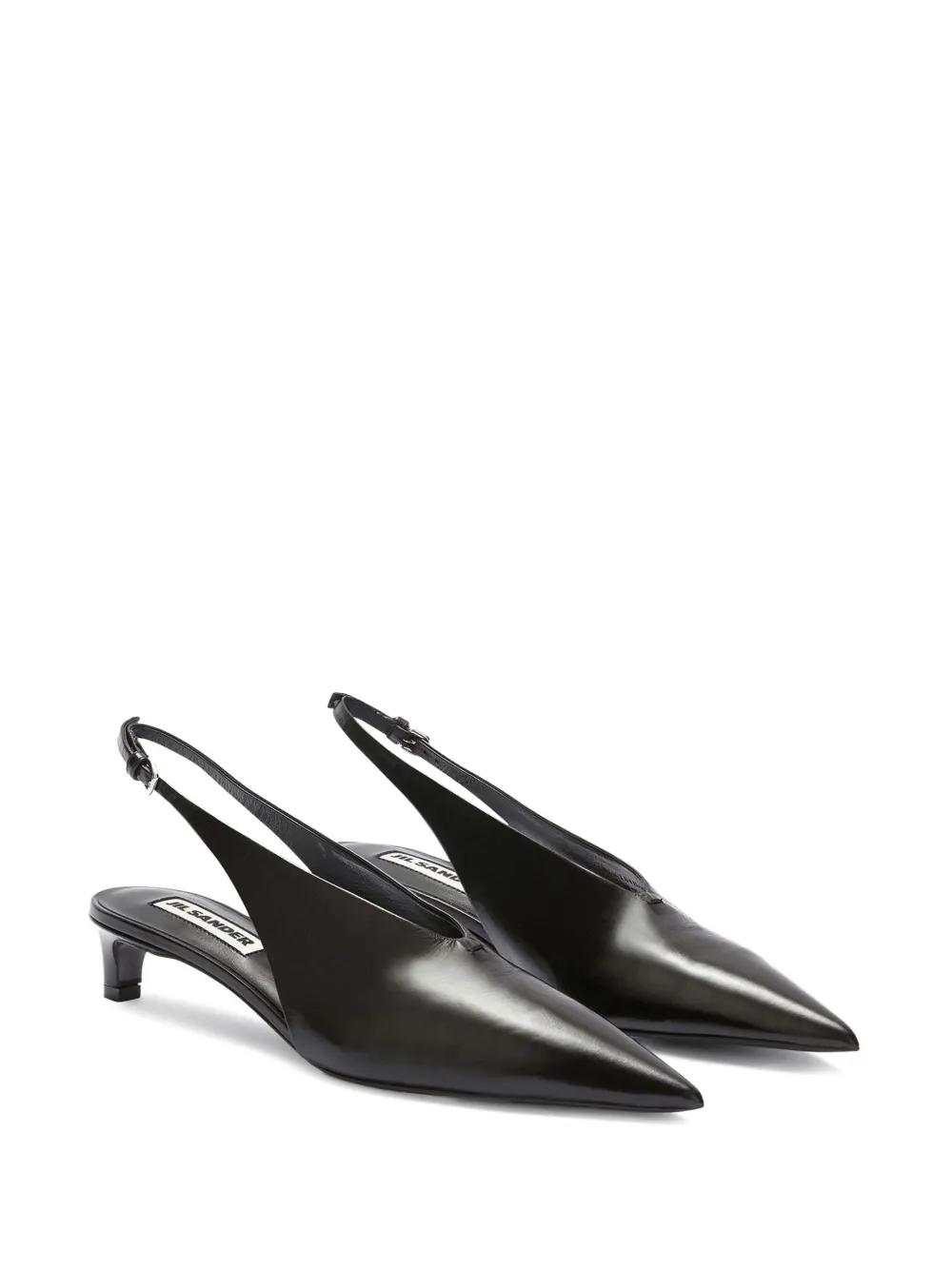black lambskin buckle-fastening slingback strap branded leather insole pointed toe kitten heel