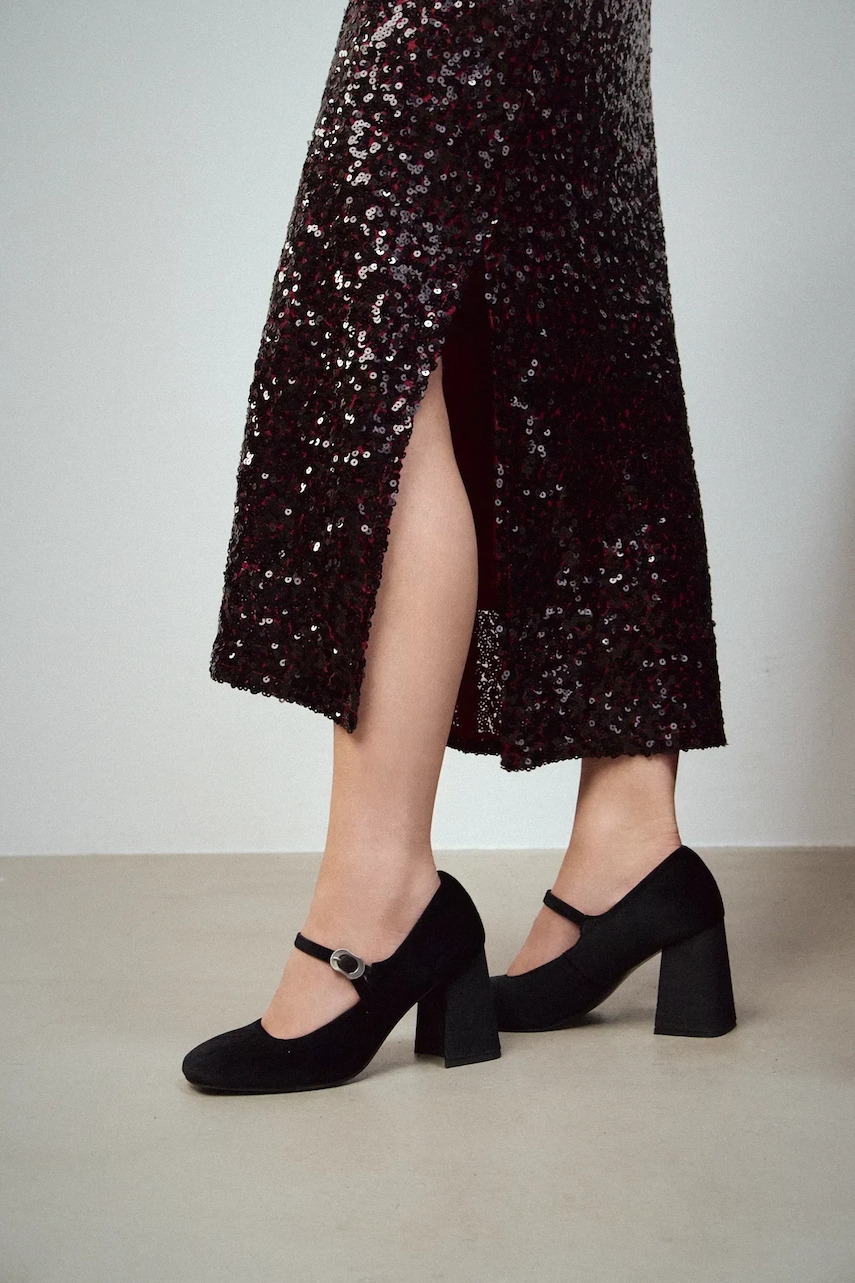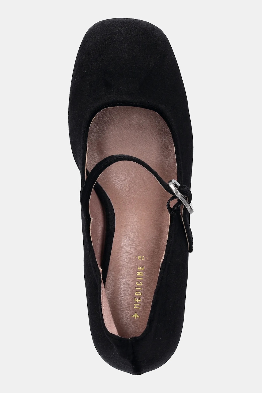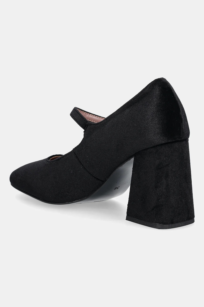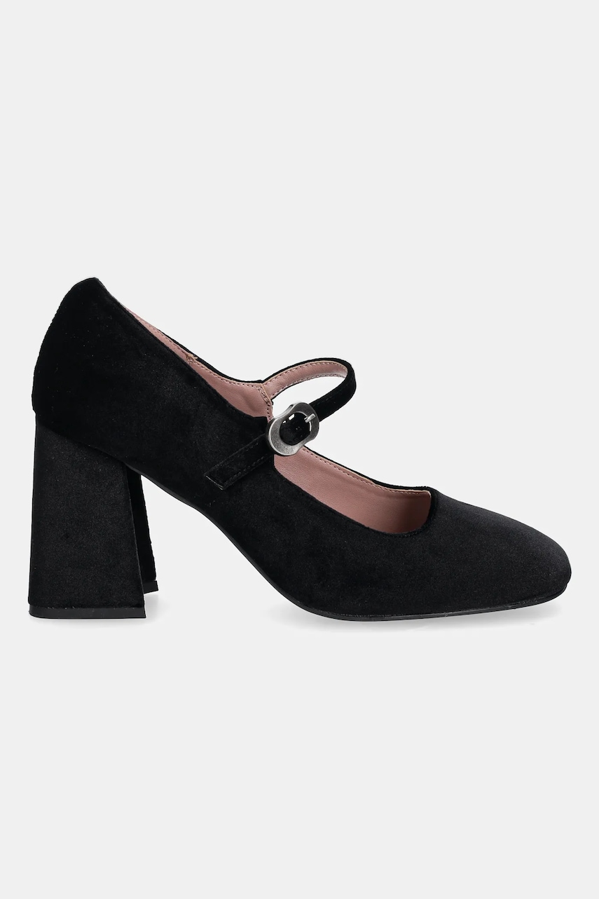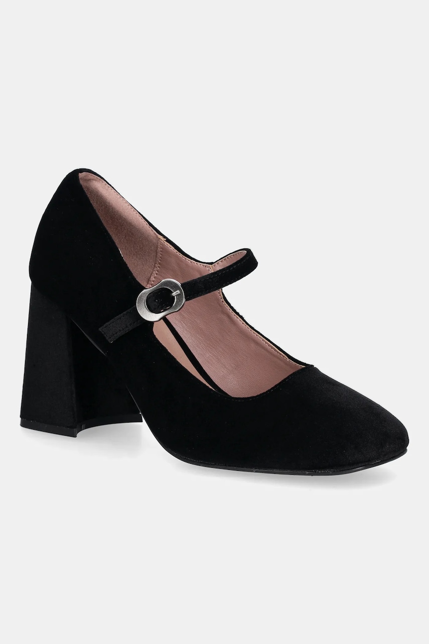 - Kwadratowy nosek. - Usztywniony zapiętek. - Zapięcie na klamrę ze szpilką, które umożliwia indywidualne dopasowanie. - Skórzana wkładka. - Gumowa podeszwa. - Model na obcasie typu słupek. - Wysokość obcasa: 8,5 cm. - Długość wkładki wynosi: 24 cm. - Wymiary podane dla rozmiaru: 37.