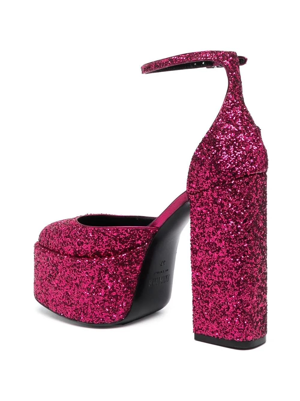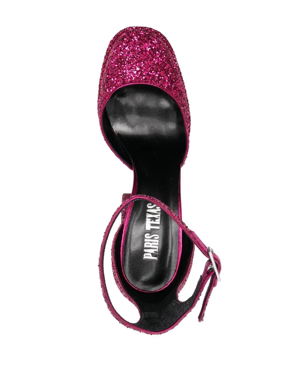 fucsia pink calf leather glitter detailing buckle-fastening ankle strap round toe branded insole platform sole 140mm block heel