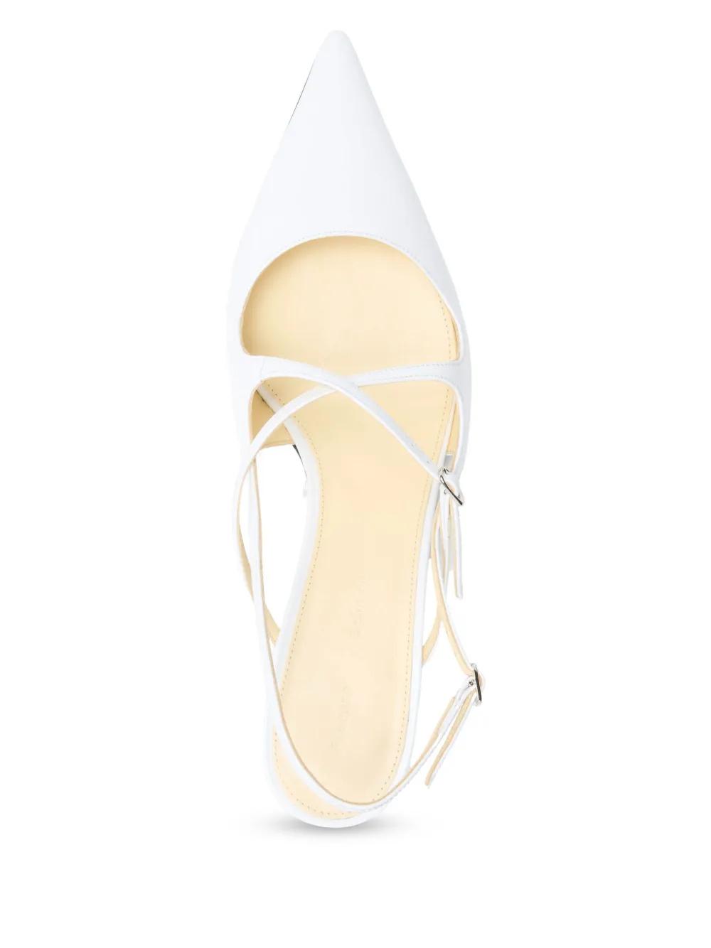 white buckle-fastening slingback strap crossover strap detail pointed toe low cone heel