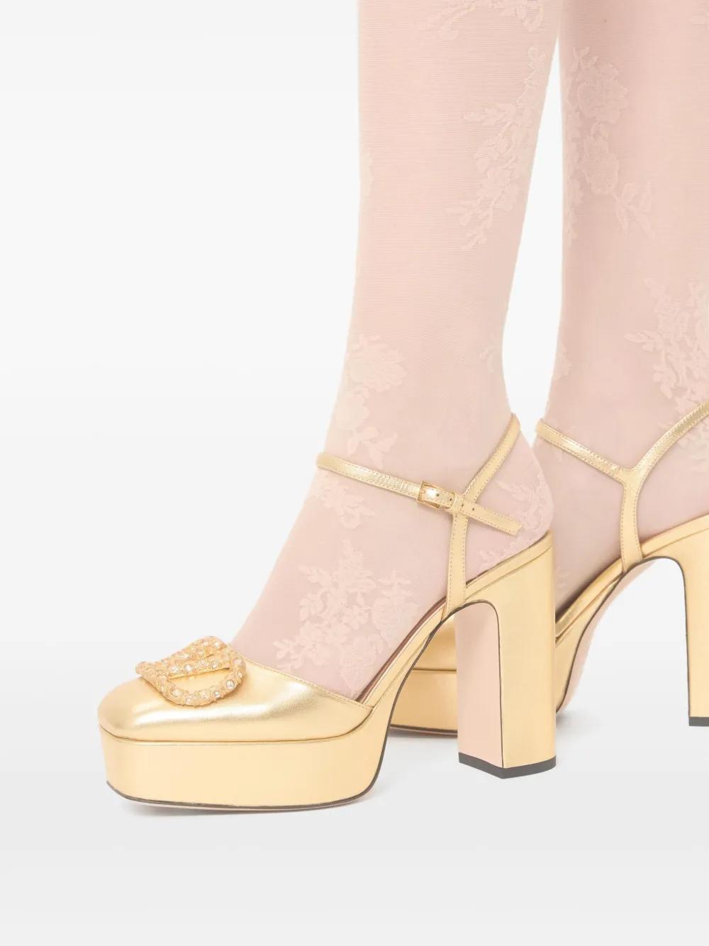 gold-tone buckle-fastening ankle strap square toe branded leather insole high block heel