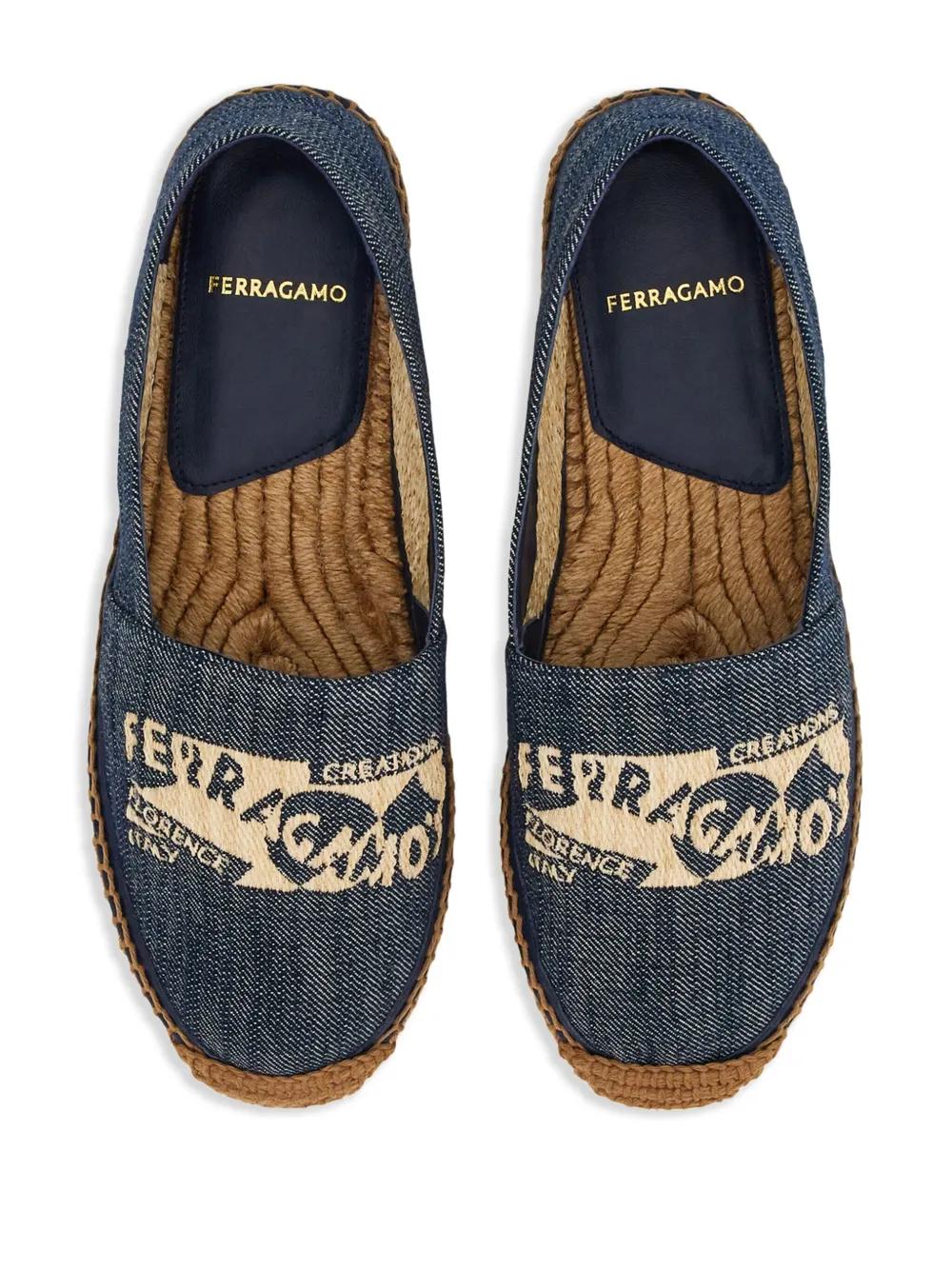 Ferragamo logo-embroidered denim espadrilles - Blue