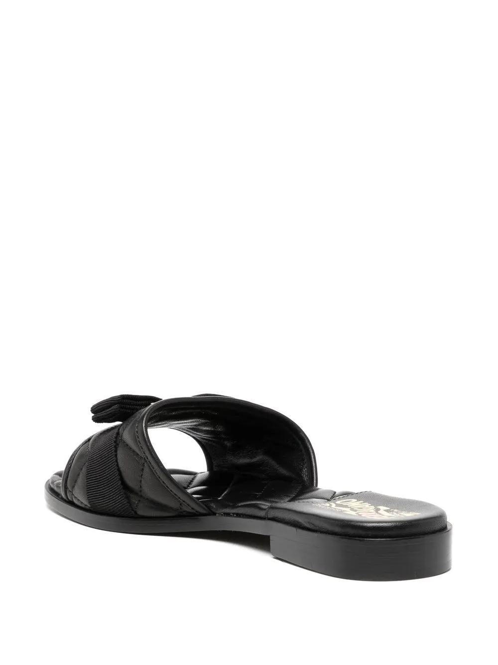 black leather quilted finish signature Vara bow detail open toe slip-on style branded insole flat leather sole