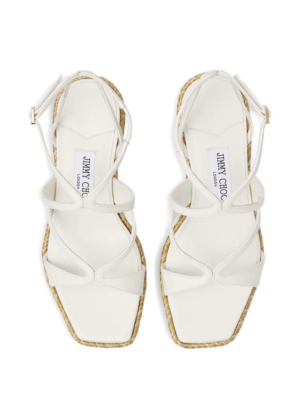 white side buckle fastening rubber sole branded leather insole braided raffia platform