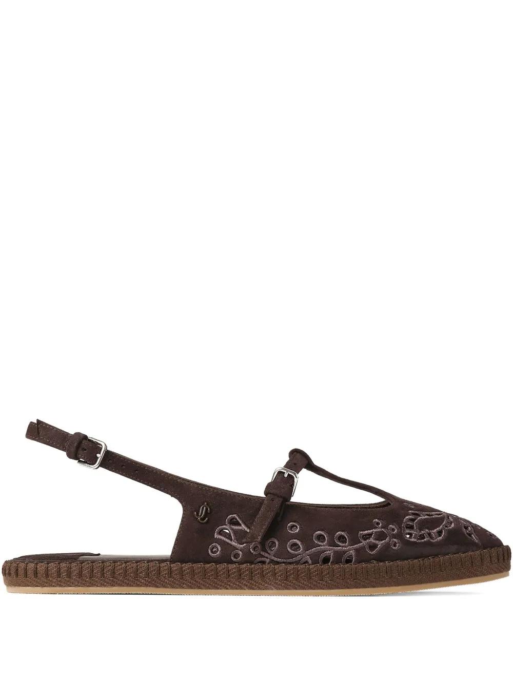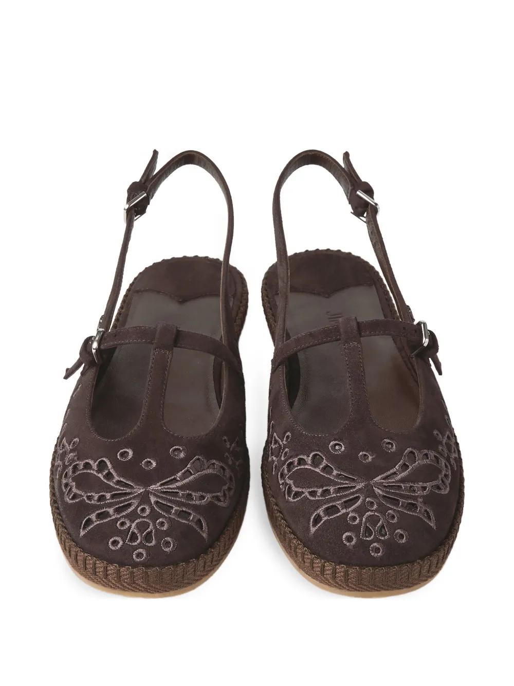 chocolate brown buckle-fastening slingback strap side buckle fastening round toe flat rubber sole