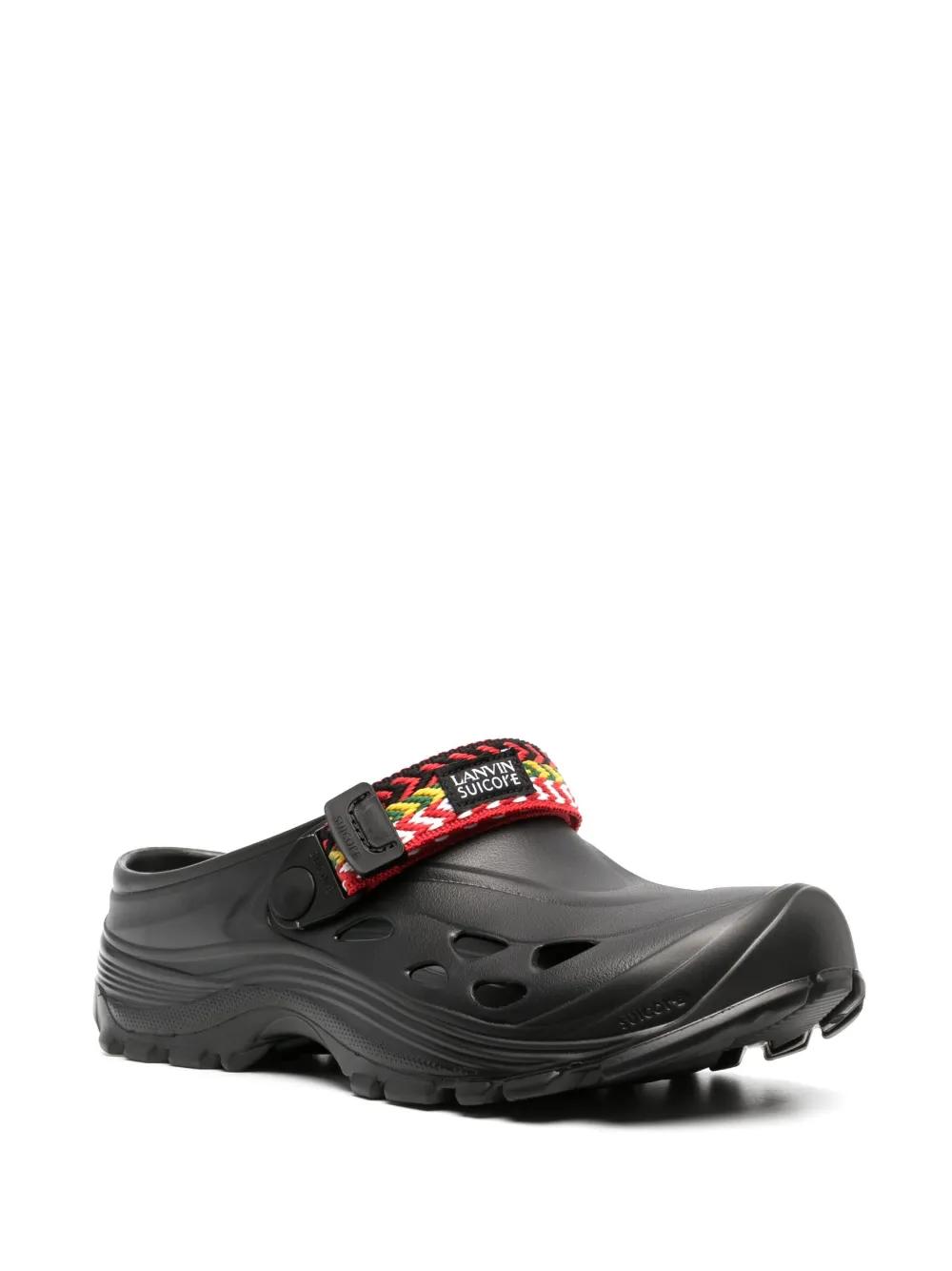 black/multicolour braided band logo patch to the front cut-out detailing round toe slip-on style chunky rubber sole