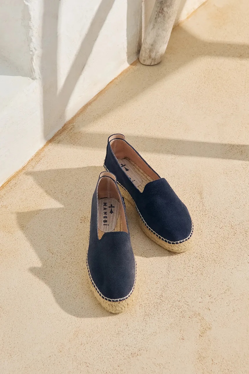 Manebi espadryle zamszowe Hamptons Double Sole Espadrilles damskie kolor czarny na platformie K 1.5 D0