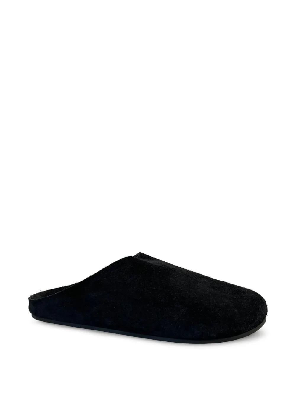 black calf leather logo plaque branded insole low block heel flat sole slip-on style