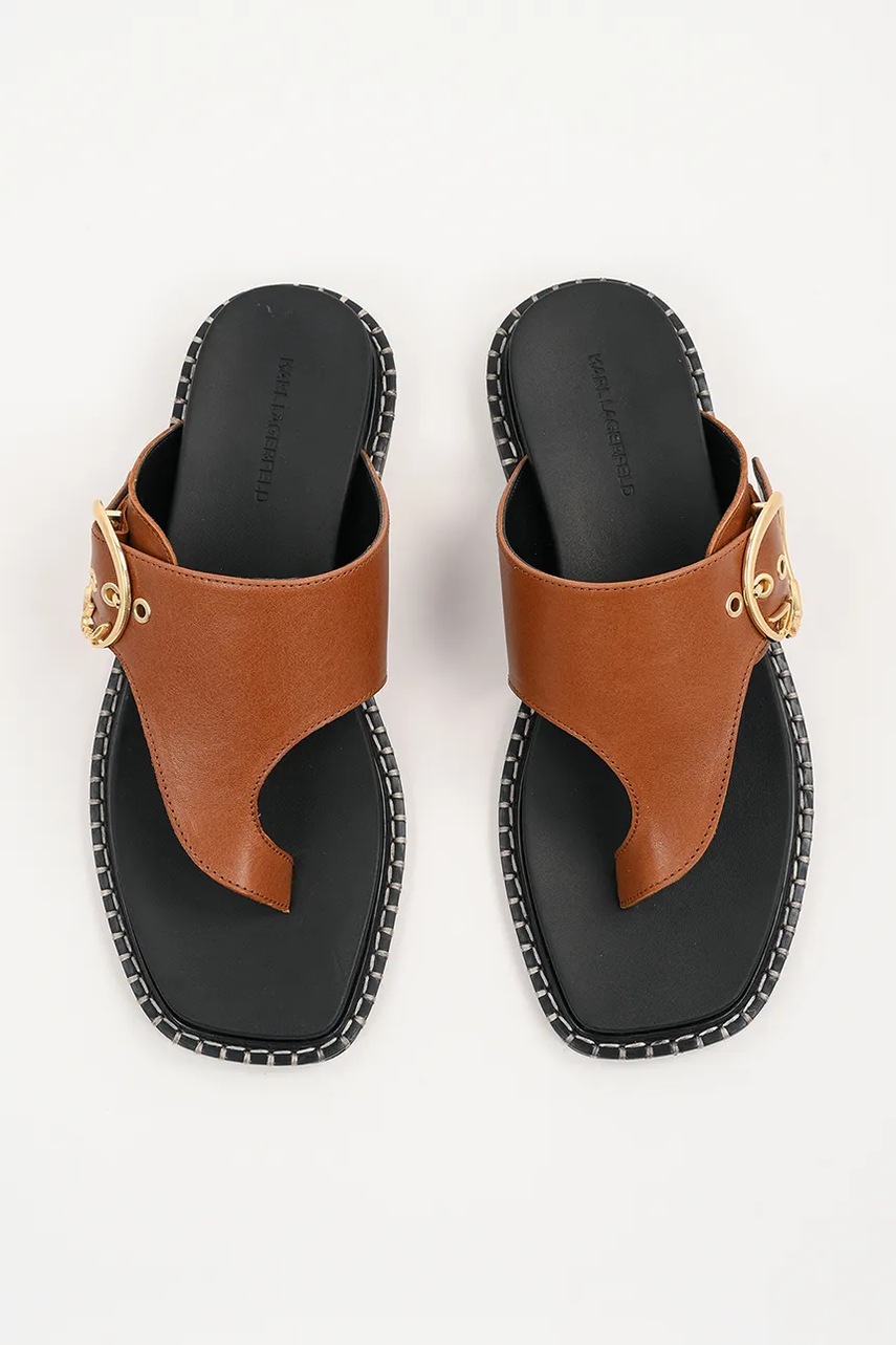 Karl Lagerfeld japonki skórzane KLEO damskie kolor brązowy na płaskim obcasie KL81325