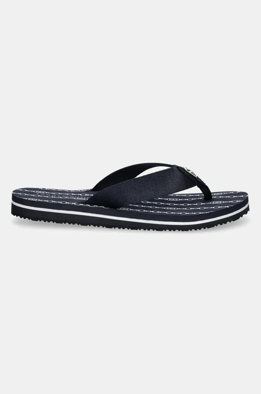 Tommy Hilfiger japonki TH CHAIN PRINT BEACH SANDAL damskie kolor granatowy na płaskim obcasie FW0FW08514