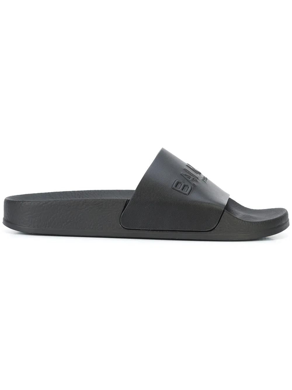 Balmain embossed logo slides - Black