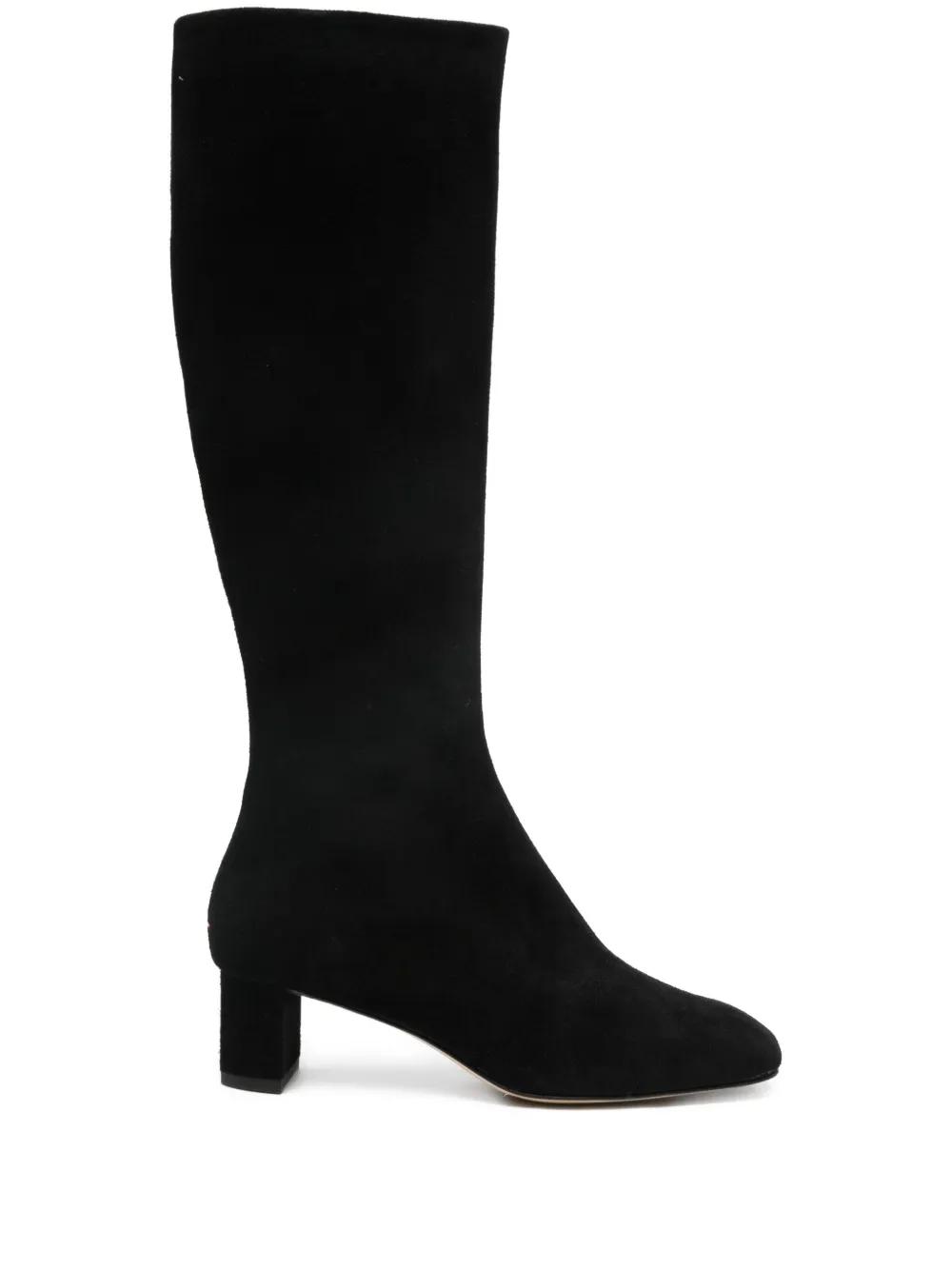 black suede upper block heel knee-high shaft square toe side zip fastening