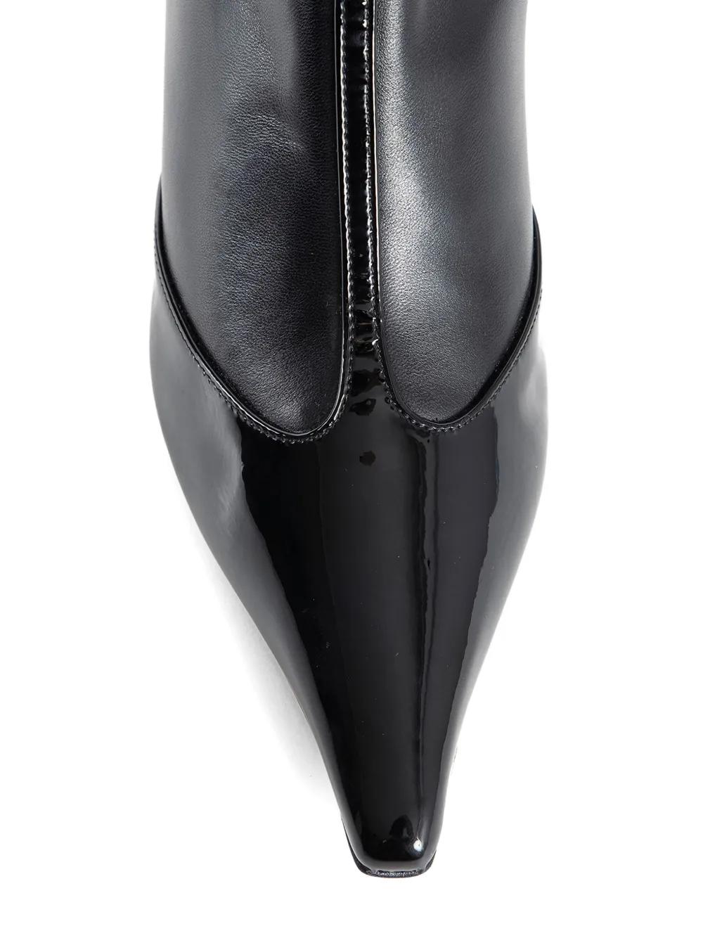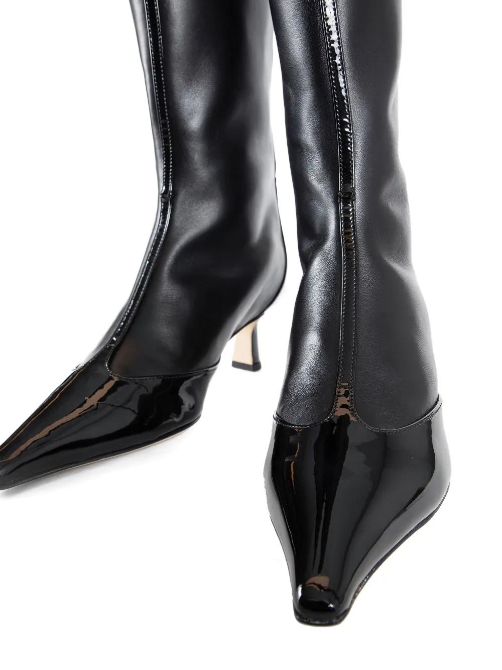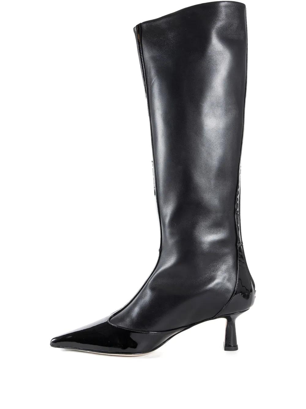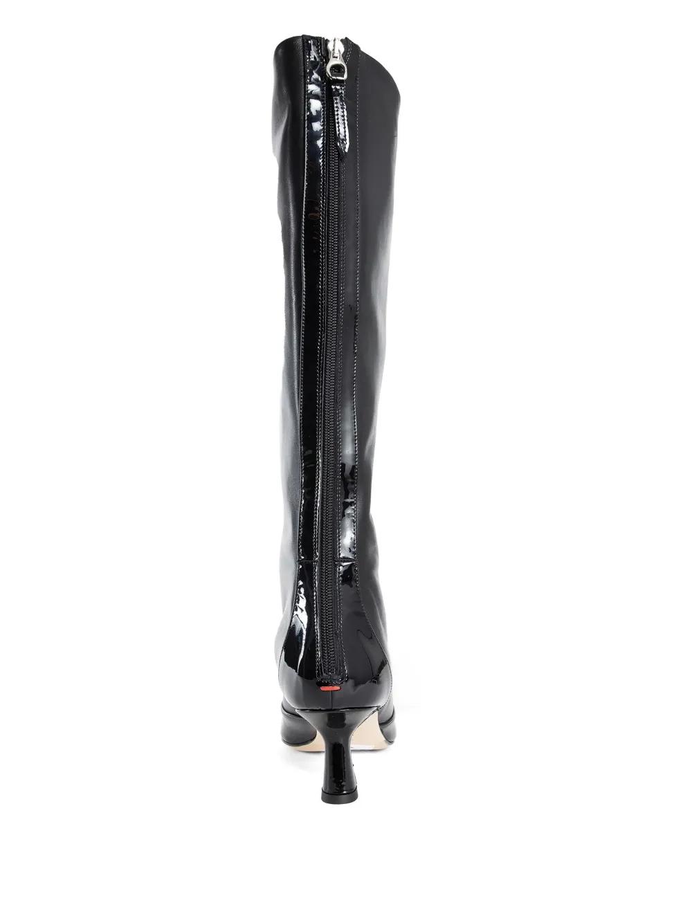 black leather patent toe zip fastening kitten heel knee-high shaft