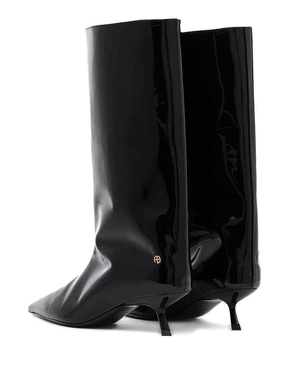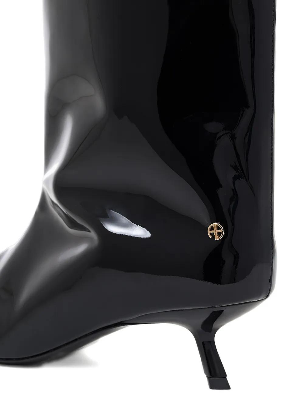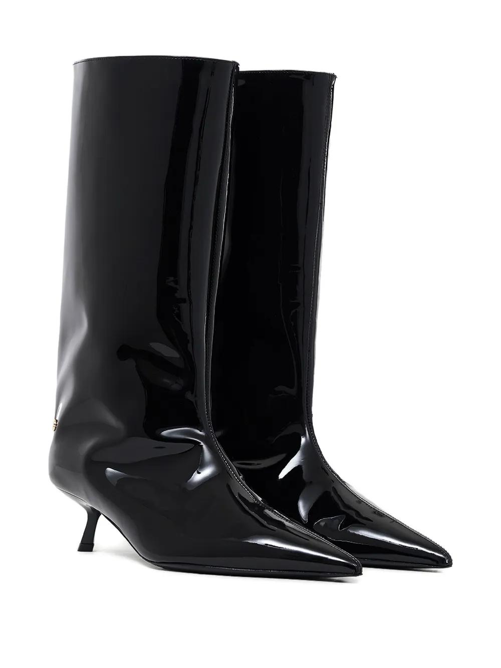 black patent finish pointed toe kitten heel logo detail wide shaft