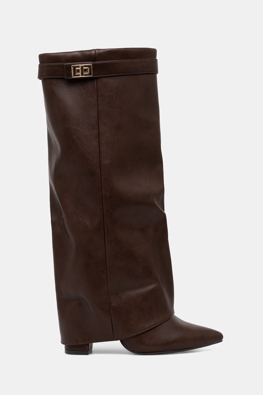 Answear Lab kozaki damskie kolor brązowy na słupku