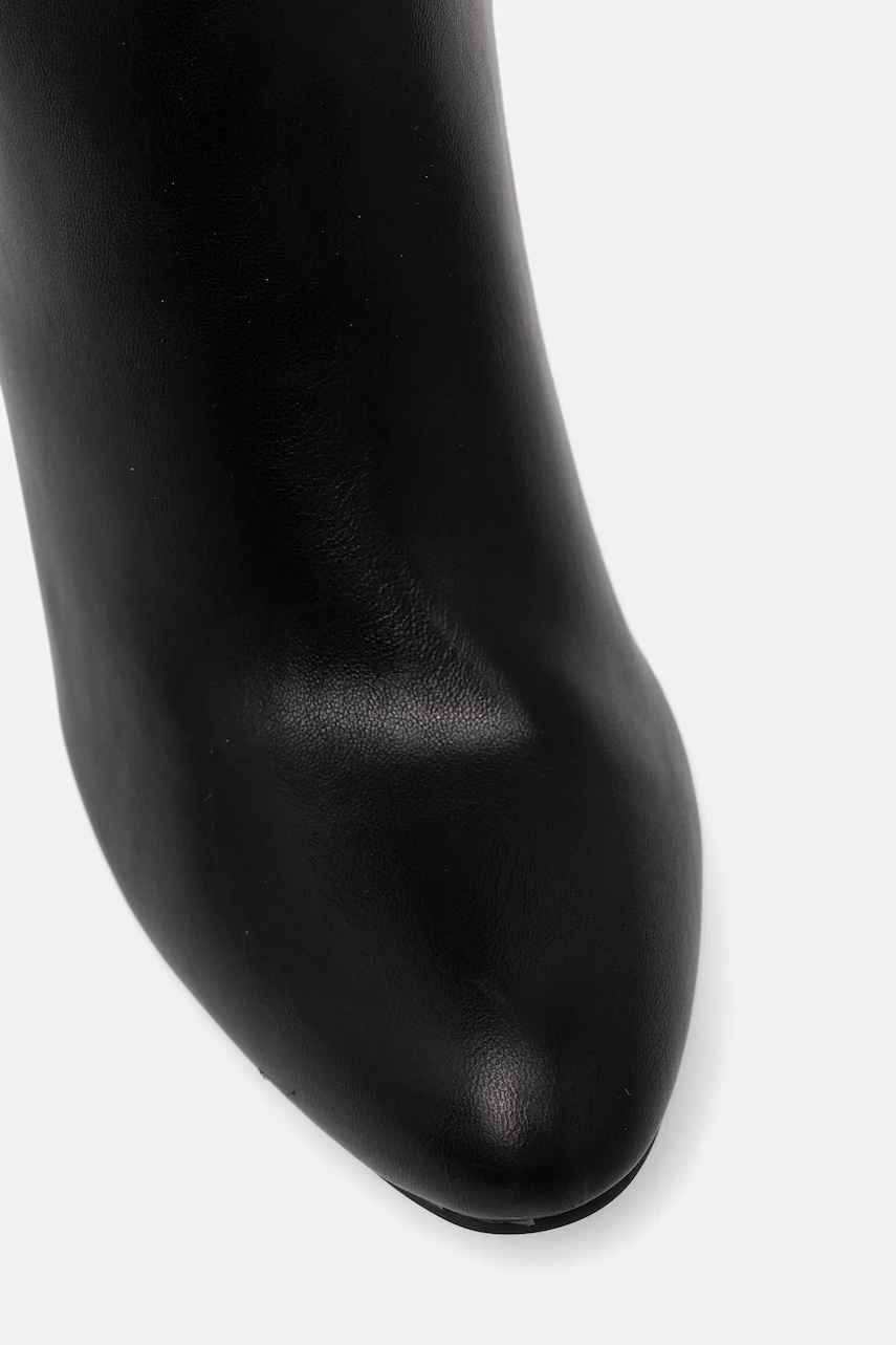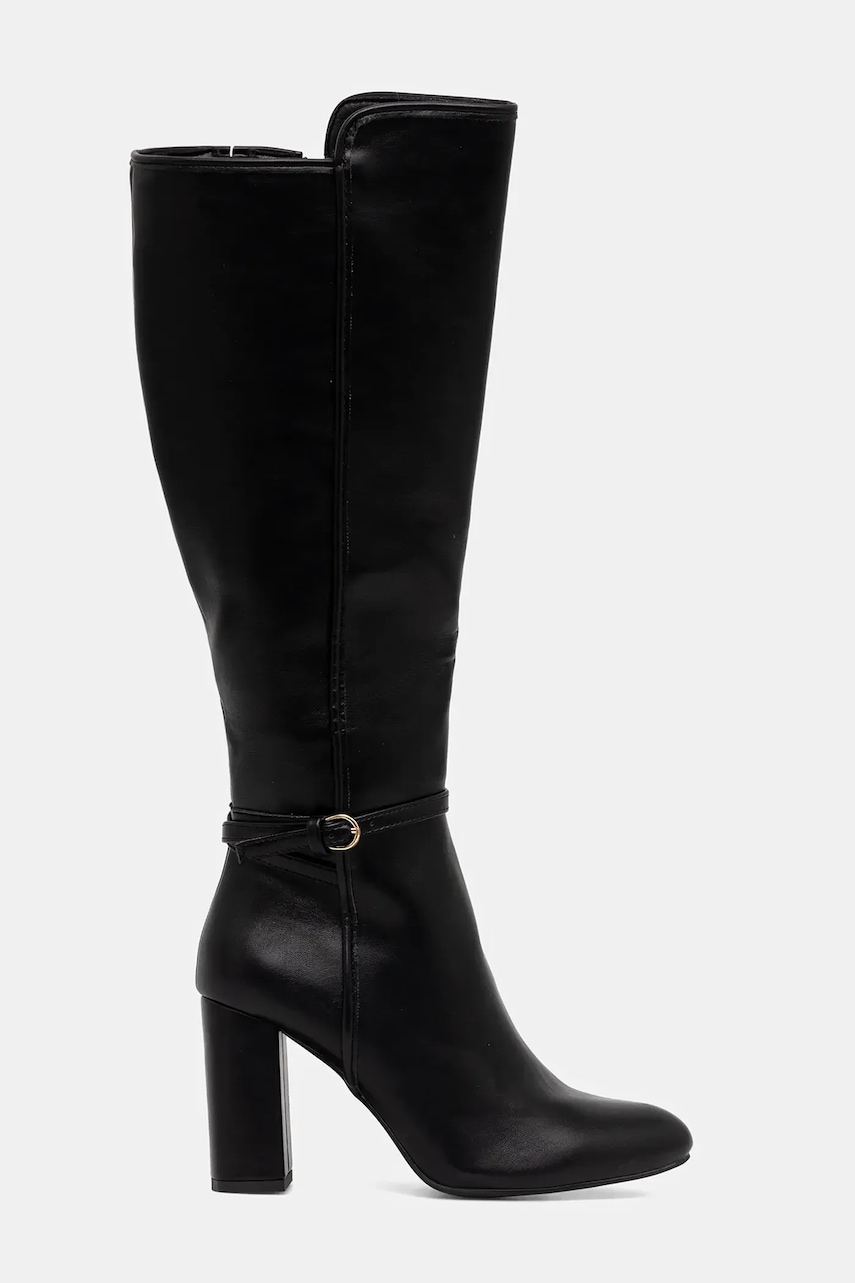 - Zwężany, usztywniony nosek. - Mocno usztywniony zapiętek. - Lekko ocieplony model. - Boczne zapięcie na suwak. - Komfortowe wnętrze. - Model na obcasie typu słupek. - Model z ozdobną klamrą. - Obwód cholewki: 38 cm. - Wysokość cholewki: 38 cm. - Wysokość obcasa: 8,5 cm. - Długość wkładki wynosi: 23,5 cm. - Wymiary podane dla rozmiaru: 37.