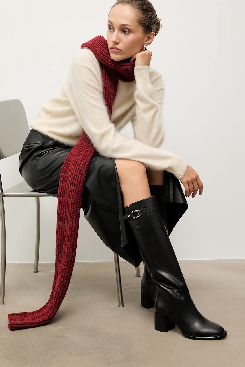 - Wygodne zapięcie na suwak ułatwia zakładanie i zdejmowanie. - Okrągły, usztywniony nosek. - Usztywniony zapiętek zapewnia doskonałe wsparcie kostki i pięty. - Tekstylne wnętrze jest komfortowe dla stopy i ułatwia utrzymanie obuwia w czystości. - Model na obcasie typu słupek. - Gumowa podeszwa zewnętrzna jest wytrzymała i odporna na uszkodzenia. - Obwód cholewki: 39 cm. - Wysokość cholewki: 40 cm. - Wysokość obcasa: 7 cm. - Długość wkładki wynosi: 23 cm. - Wymiary podane dla rozmiaru: 37.