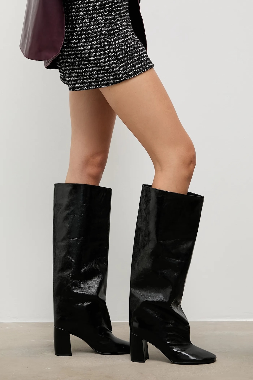 - Okrągły, usztywniony nosek. - Mocno usztywniony zapiętek stabilizuje piętę i utrzymuje stopę w bucie, tak aby nie wysuwała się podczas ruchu. - Gumowa podeszwa zewnętrzna jest wytrzymała i odporna na uszkodzenia. - Model na obcasie typu słupek. - Skórzana wkładka jest komfortowa dla stopy i zapobiega odparzeniom, otarciom oraz pojawianiu się nieprzyjemnego zapachu. - Miękka wyściółka, wykonana z materiału tekstylnego, zapobiega podrażnieniom i zapewnia wysoki komfort noszenia. - Model bez zapięcia. - Wysokość cholewki: 40,5 cm. - Obwód cholewki: 39 cm. - Wysokość obcasa: 8,5 cm. - Długość wkładki wynosi: 23 cm. - Wymiary podane dla rozmiaru: 37.
