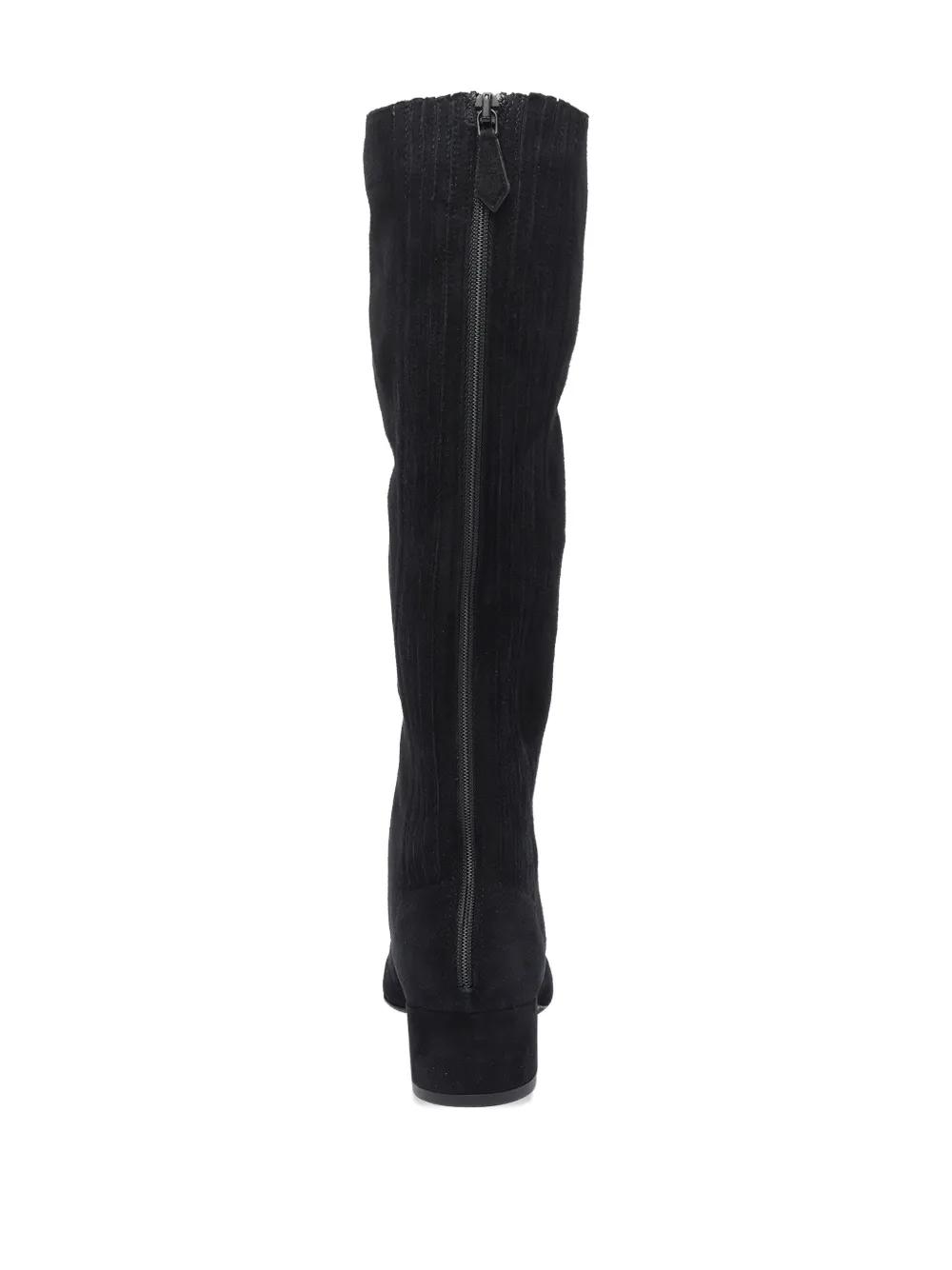 black suede 70mm stiletto heel logo plaque knee-high pointed toe leather lining leather sole