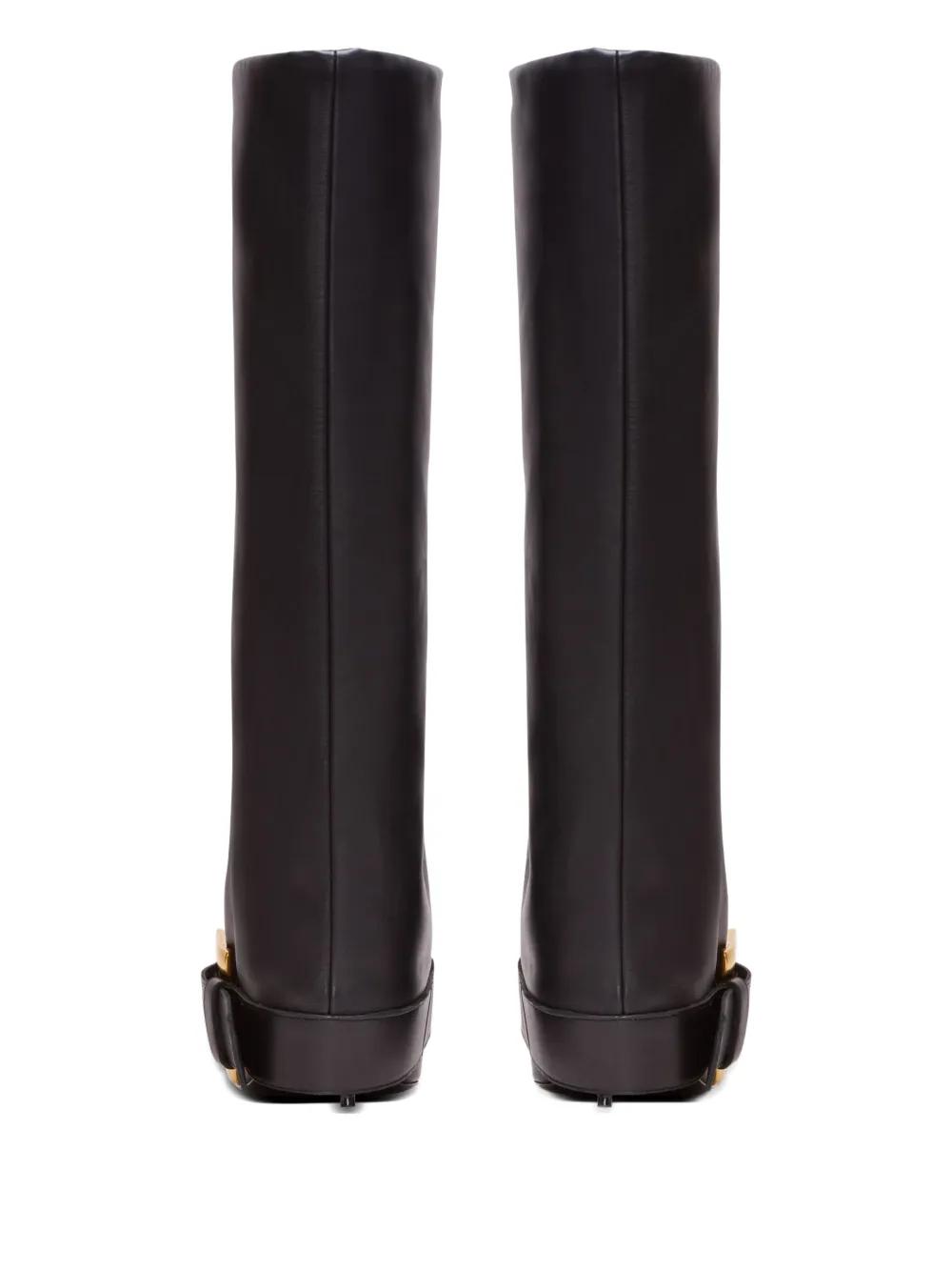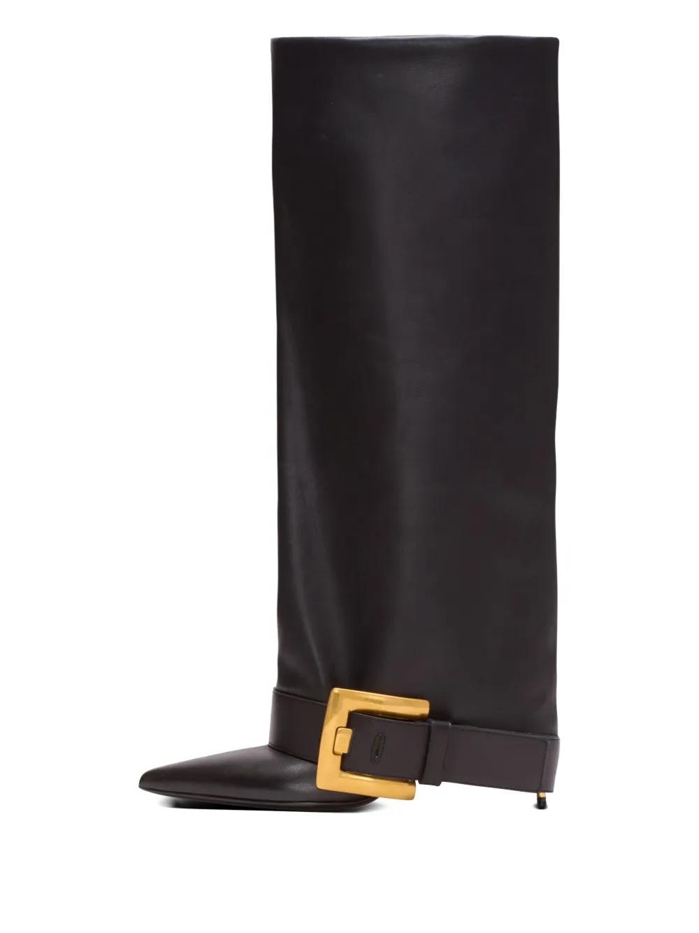 black pull-on style stiletto heel decorative buckle detail pointed toe