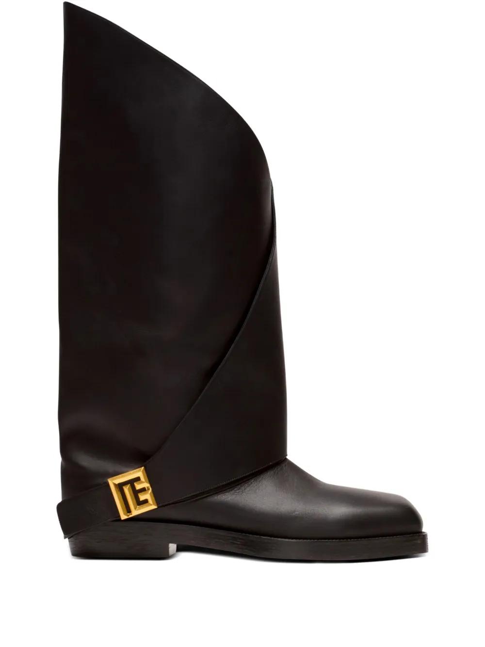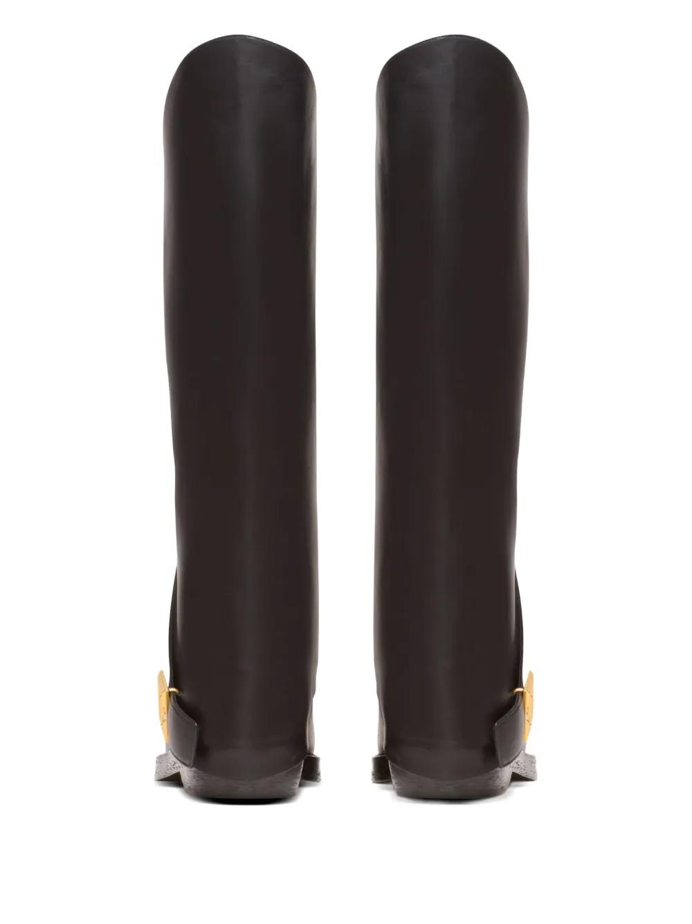 black slip-on style branded leather insole leather sole gold-tone logo plaque