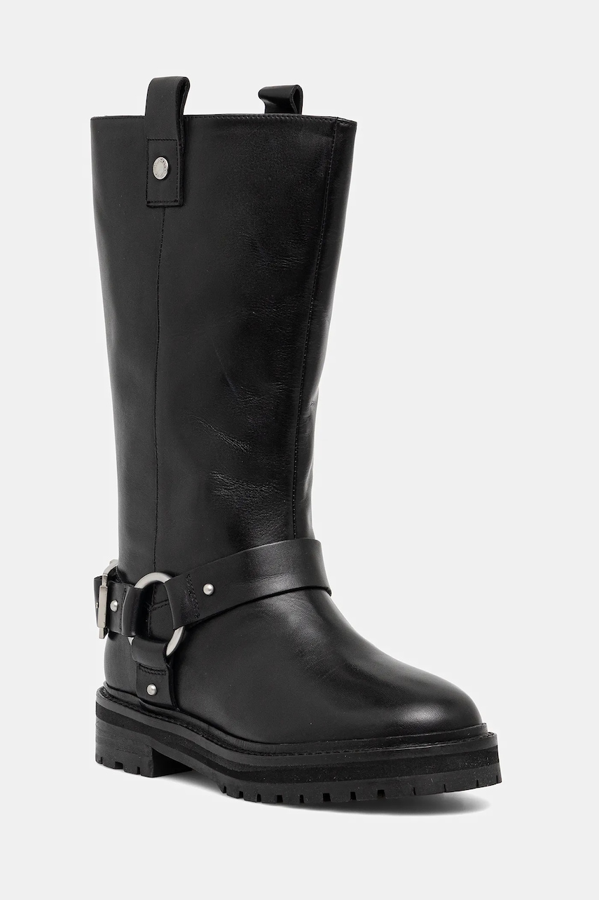 Barbour kozaki skórzane Freya damskie kolor czarny na płaskim obcasie LFO0779BK91
