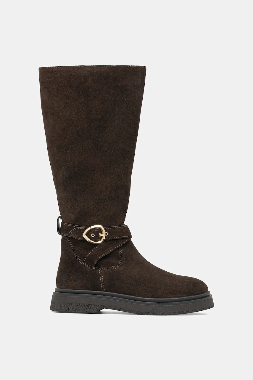 Blauer kozaki zamszowe HANNA damskie kolor brązowy na płaskim obcasie F5HANNA05/SUE
