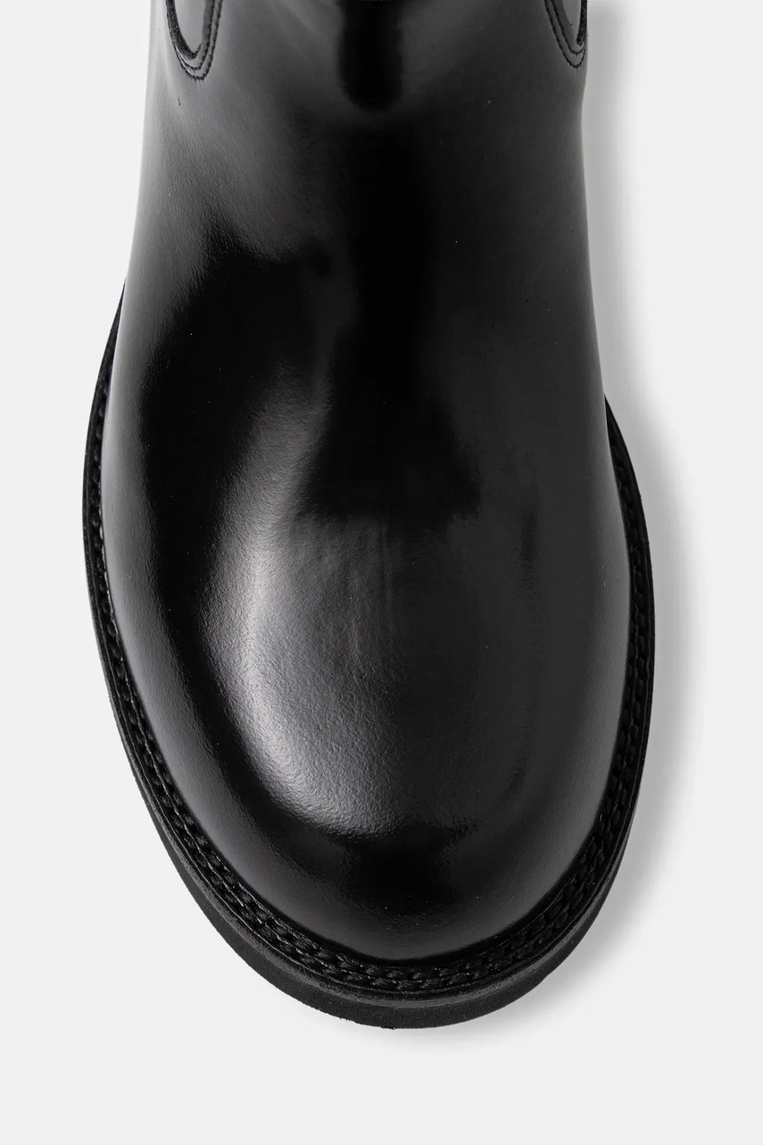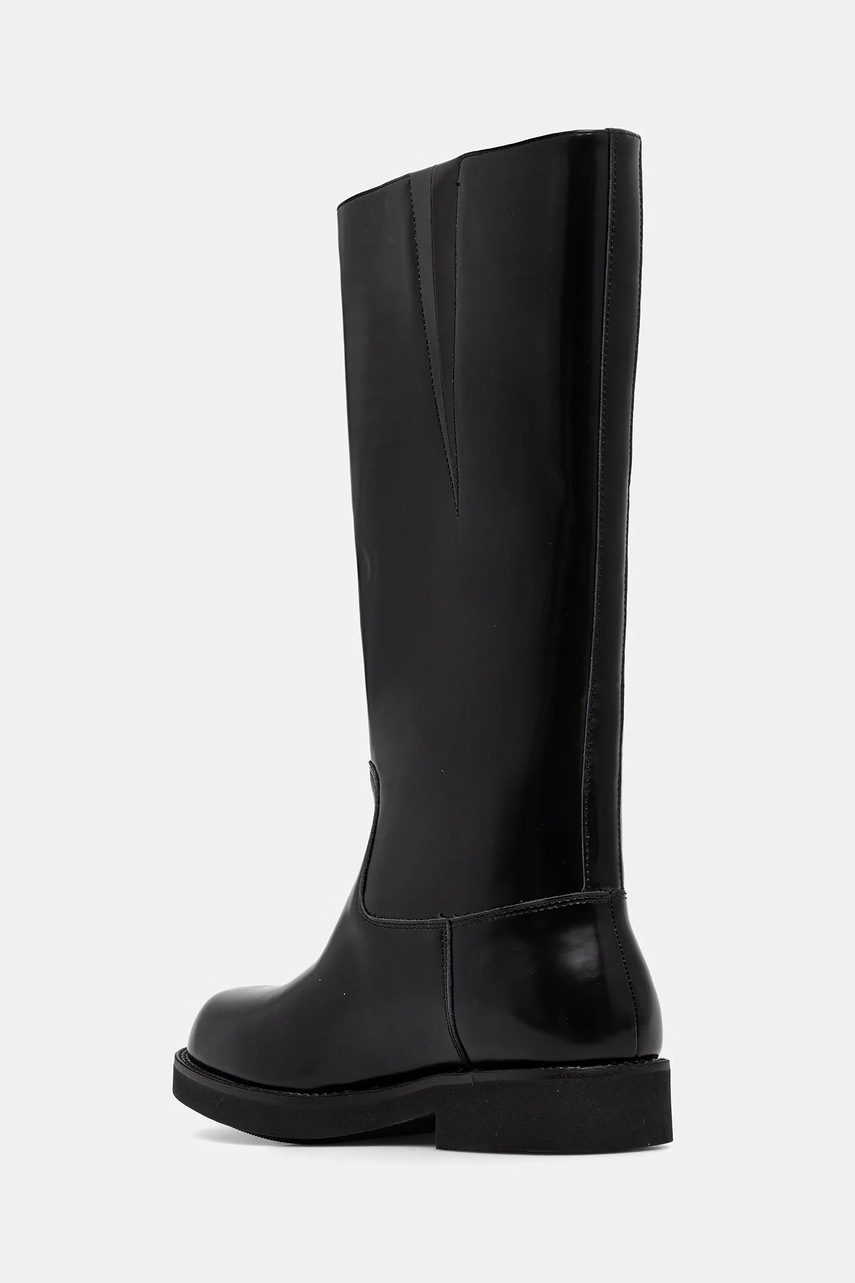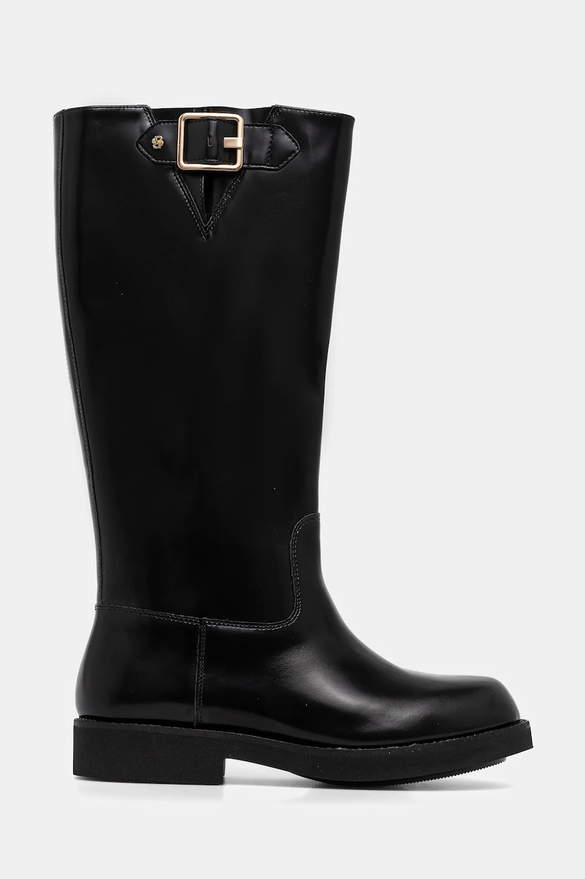 BOSS kozaki skórzane Eleri damskie kolor czarny na płaskim obcasie 50552771