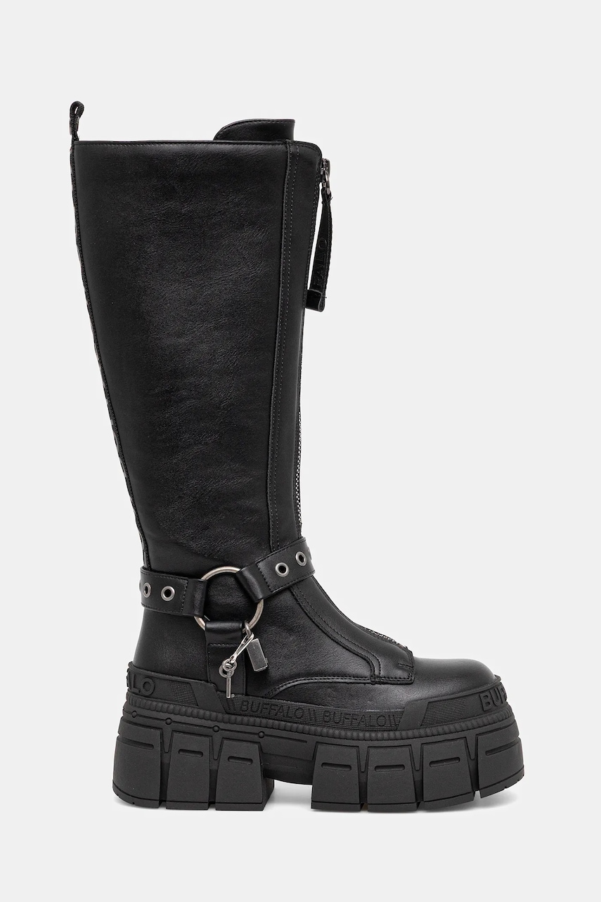 Buffalo kozaki Gospher Biker Hi kolor czarny na platformie 1270131-BLK