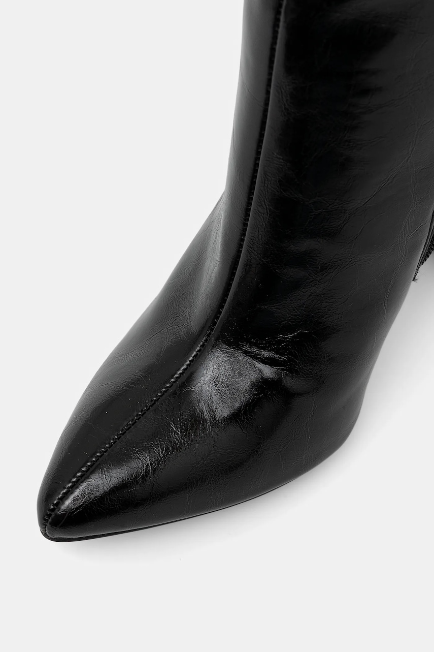 - Model oznaczony znakiem PETA-Approved Vegan, które gwarantuje, że produkt jest w całości wegański. - Wygodne, boczne zapięcie na krótki suwak ułatwia wkładanie i ściąganie. - Spiczasty, usztywniony nosek. - Usztywniony zapiętek zapewnia doskonałe wsparcie kostki i pięty. - Komfortowe wnętrze. - Model na obcasie typu słupek. - Gumowa podeszwa zewnętrzna jest wytrzymała i odporna na uszkodzenia. - Obwód cholewki: 46 cm. - Wysokość cholewki: 39 cm. - Wysokość obcasa: 11,5 cm. - Długość wkładki wynosi: 24,5 cm. - Wymiary podane dla rozmiaru: 39.