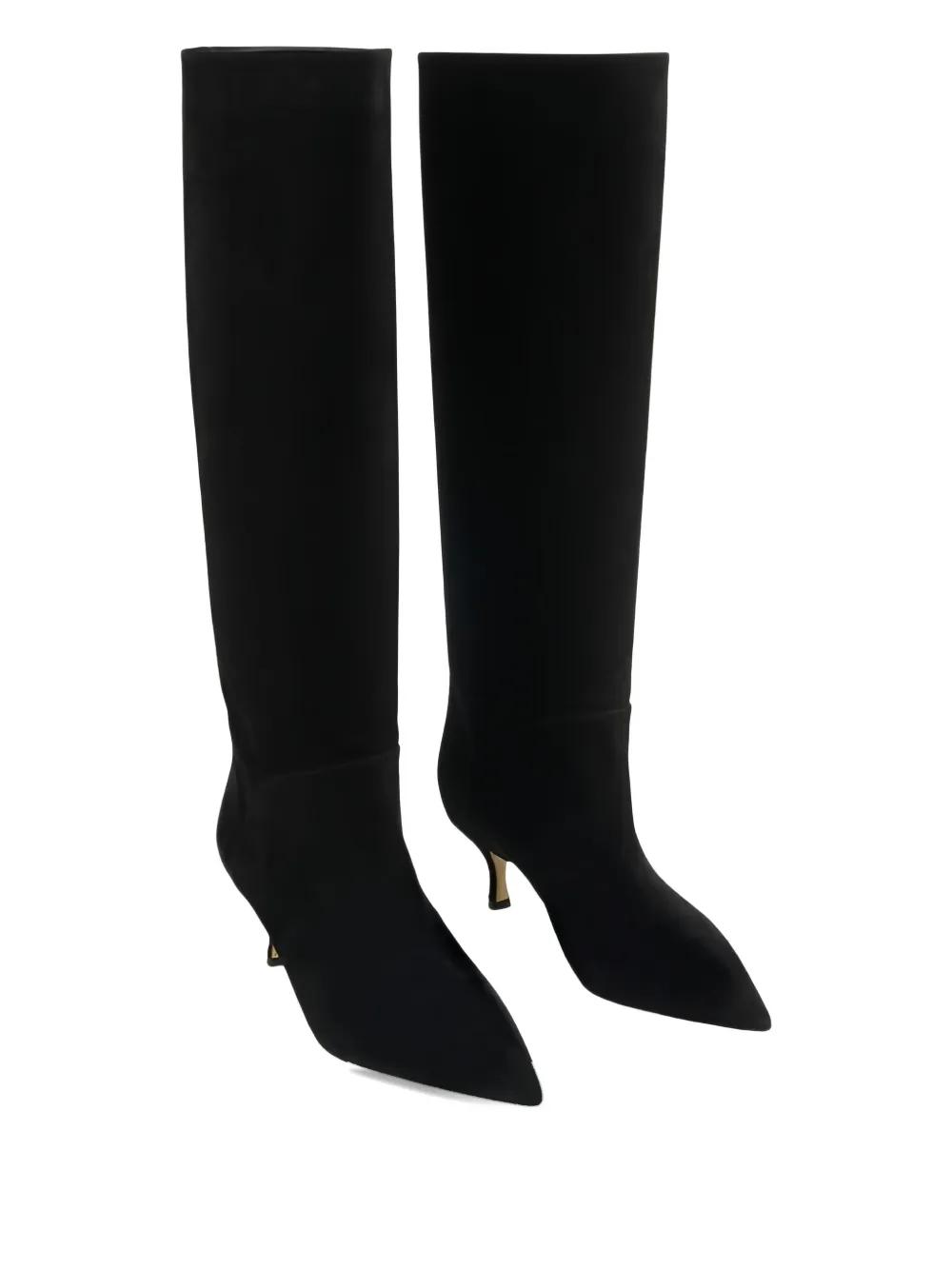 pearl side zip fastening oval toe block heel platform sole knee-high