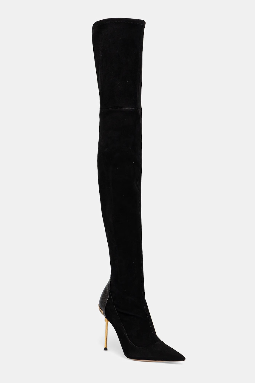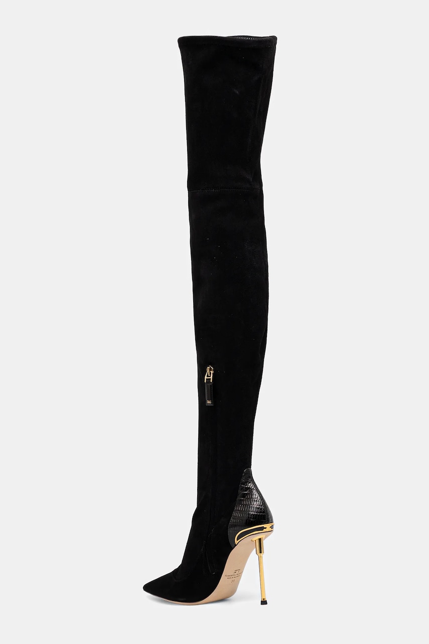 Elisabetta Franchi kozaki zamszowe damskie kolor czarny na szpilce SA36L57E2