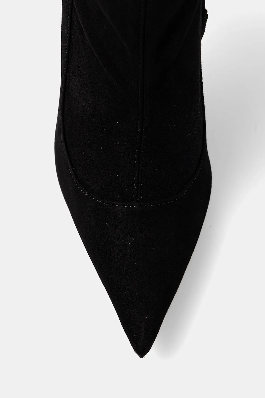 - Spiczasty, usztywniony nosek. - Usztywniony zapiętek zapewnia doskonałe wsparcie kostki i pięty. - Zapięcie na suwak. - Skórzana podeszwa. - Skórzane wnętrze. - Dołączony tekstylny worek zabezpiecza produkt przed kurzem. - Obwód cholewki: 41 cm. - Wysokość cholewki: 66 cm. - Wysokość obcasa: 9 cm. - Długość wkładki wynosi: 25 cm. - Wymiary podane dla rozmiaru: 39.