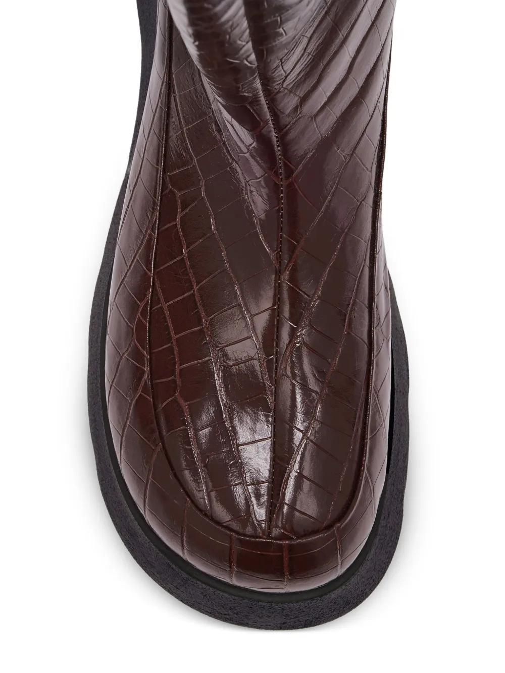 black leather pull-on style knee-high 80mm high block heel round toe branded leather insole leather outsole