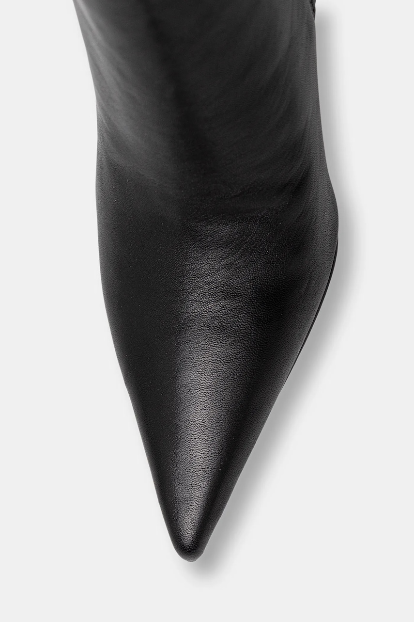 - Elastyczna wstawka zapewnia indywidualne dopasowanie. - Wygodne zapięcie na suwak ułatwia zakładanie i zdejmowanie. - Spiczasty, usztywniony nosek. - Usztywniony zapiętek zapewnia doskonałe wsparcie kostki i pięty. - Tekstylne wnętrze jest komfortowe dla stopy i ułatwia utrzymanie obuwia w czystości. - Model na obcasie typu szpilka. - Obwód cholewki: 38 cm. - Wysokość cholewki: 38 cm. - Wysokość obcasa: 9,5 cm. - Długość wkładki wynosi: 24 cm. - Wymiary podane dla rozmiaru: 37.