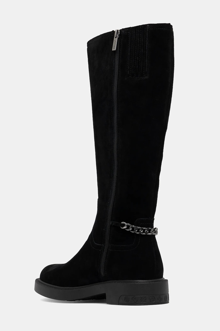 Guess kozaki zamszowe FYONAL2 damskie kolor czarny na płaskim obcasie FLFYN2 LEA11
