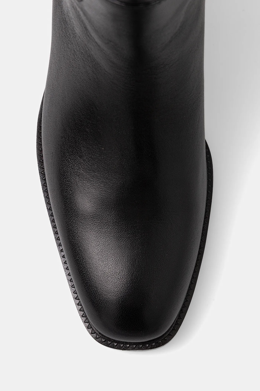 - Okrągły, usztywniony nosek. - Usztywniony zapiętek zapewnia doskonałe wsparcie kostki i pięty. - Skórzana wkładka jest komfortowa dla stopy i zapobiega odparzeniom, otarciom oraz pojawianiu się nieprzyjemnego zapachu. - Dołączony tekstylny worek zabezpiecza produkt przed kurzem. - Wsuwany model. - Obwód cholewki: 40 cm. - Wysokość cholewki: 43 cm. - Wysokość obcasa: 4 cm. - Długość wkładki wynosi: 25 cm. - Wymiary podane dla rozmiaru: 38.
