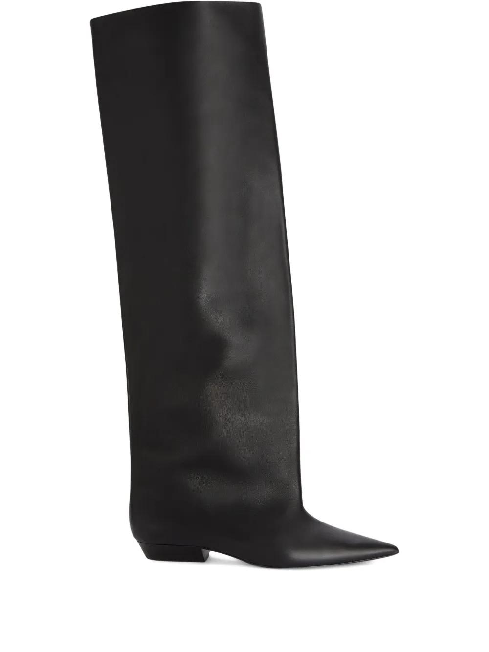leather knee-high boots - Black
