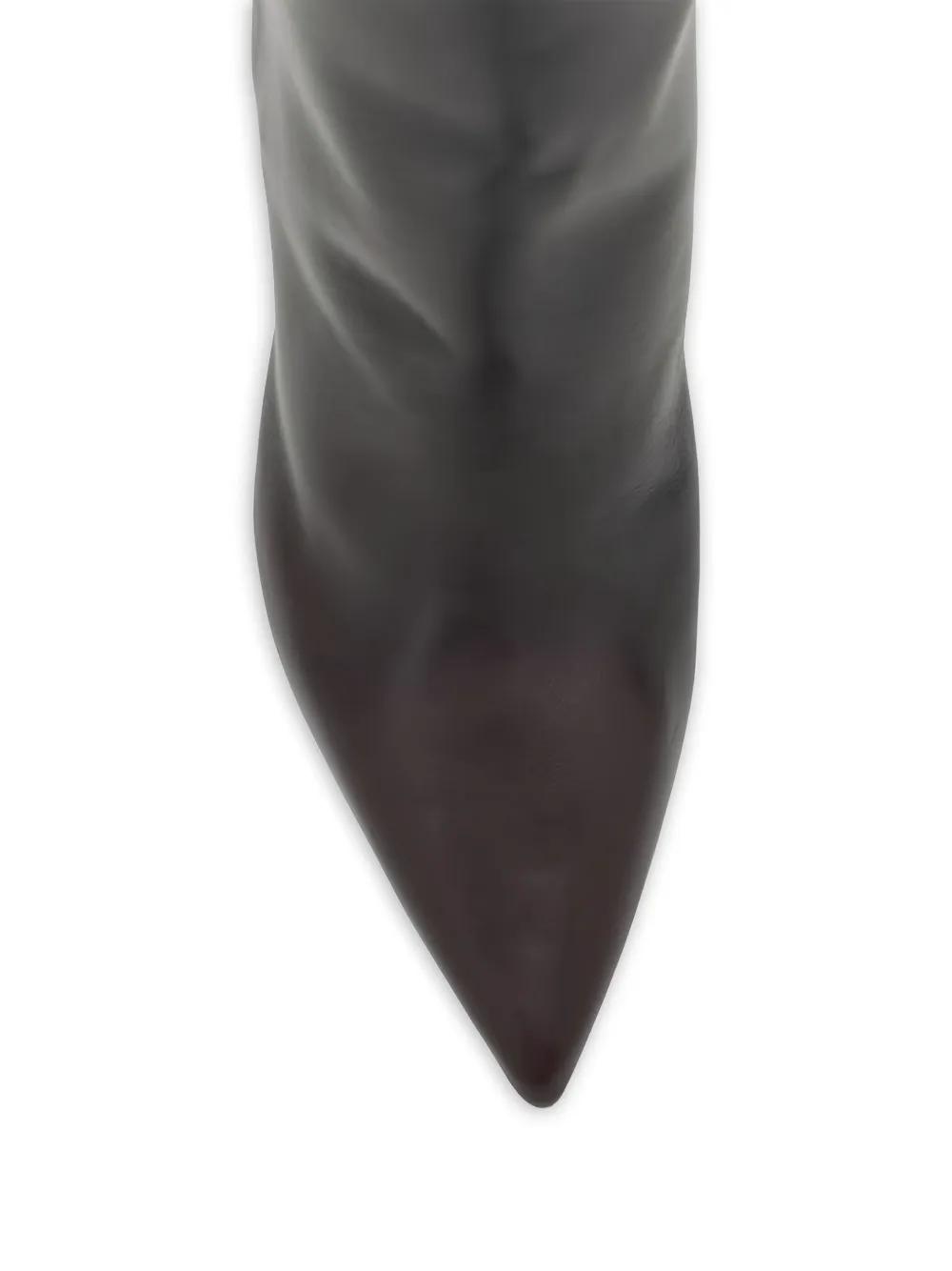 deep merlot 85mm heel pointed toe high shaft button detail tonal stitching