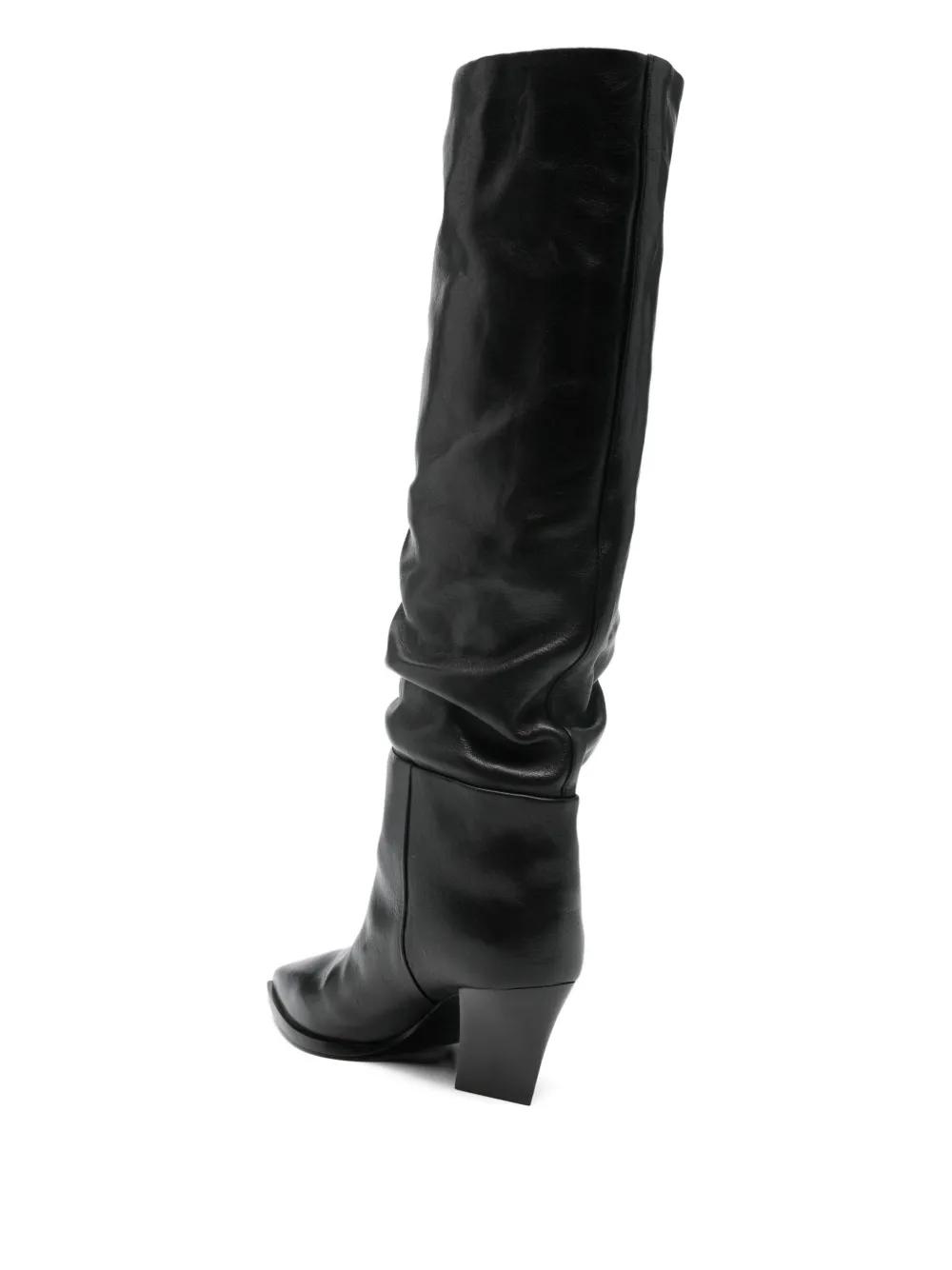 black pointed toe block heel gathered detail knee-high This piece comes complete with a protective dust bag.