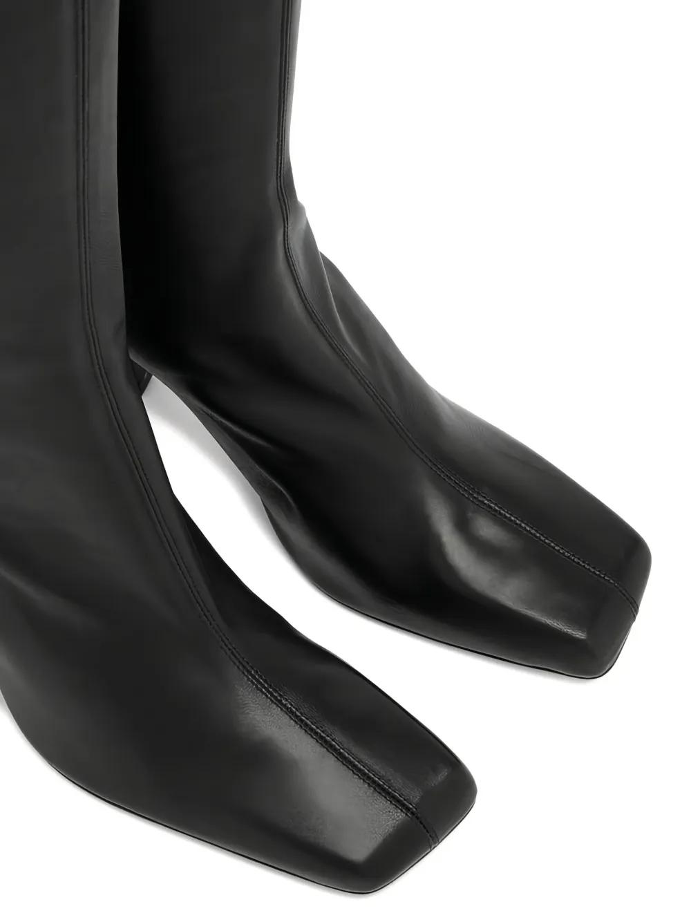 black over-the-knee shaft square toe stiletto heel rear zip fastening