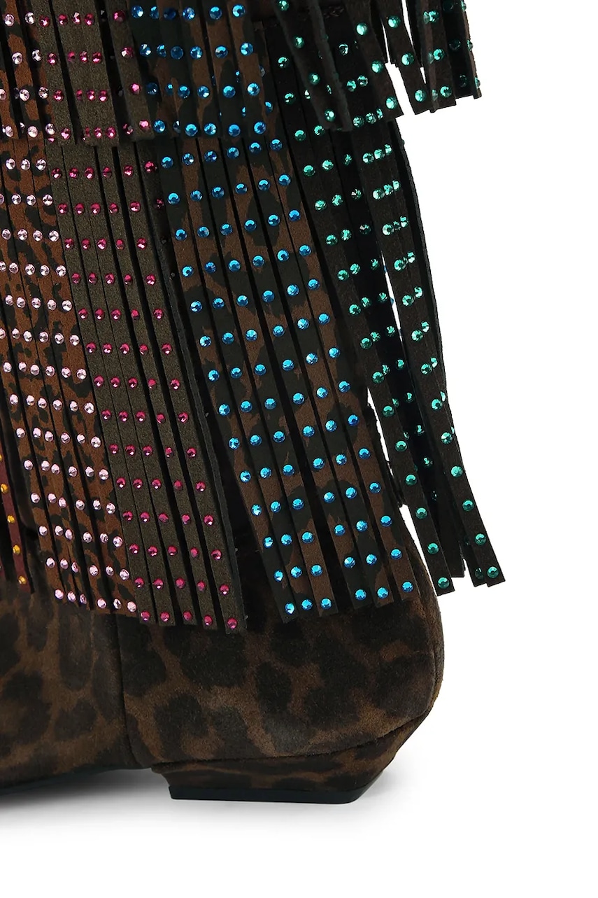 Kurt Geiger London kozaki zamszowe Western Fringe Pull On damskie kolor brązowy na małym obcasie 5030035289