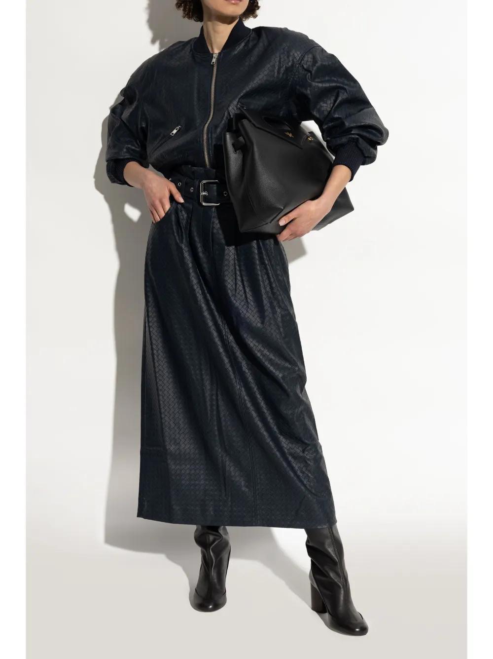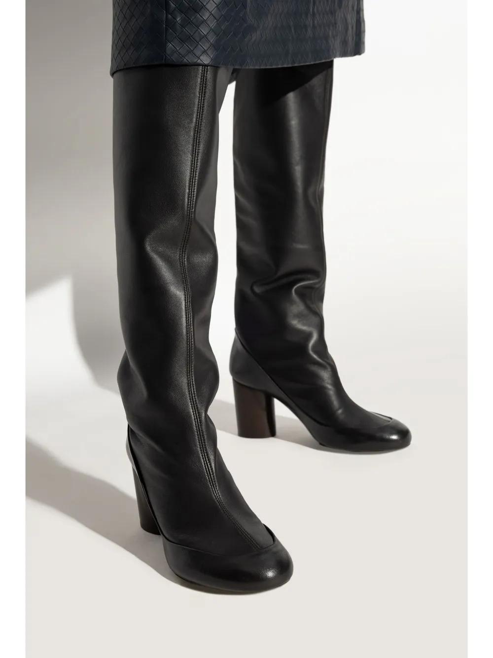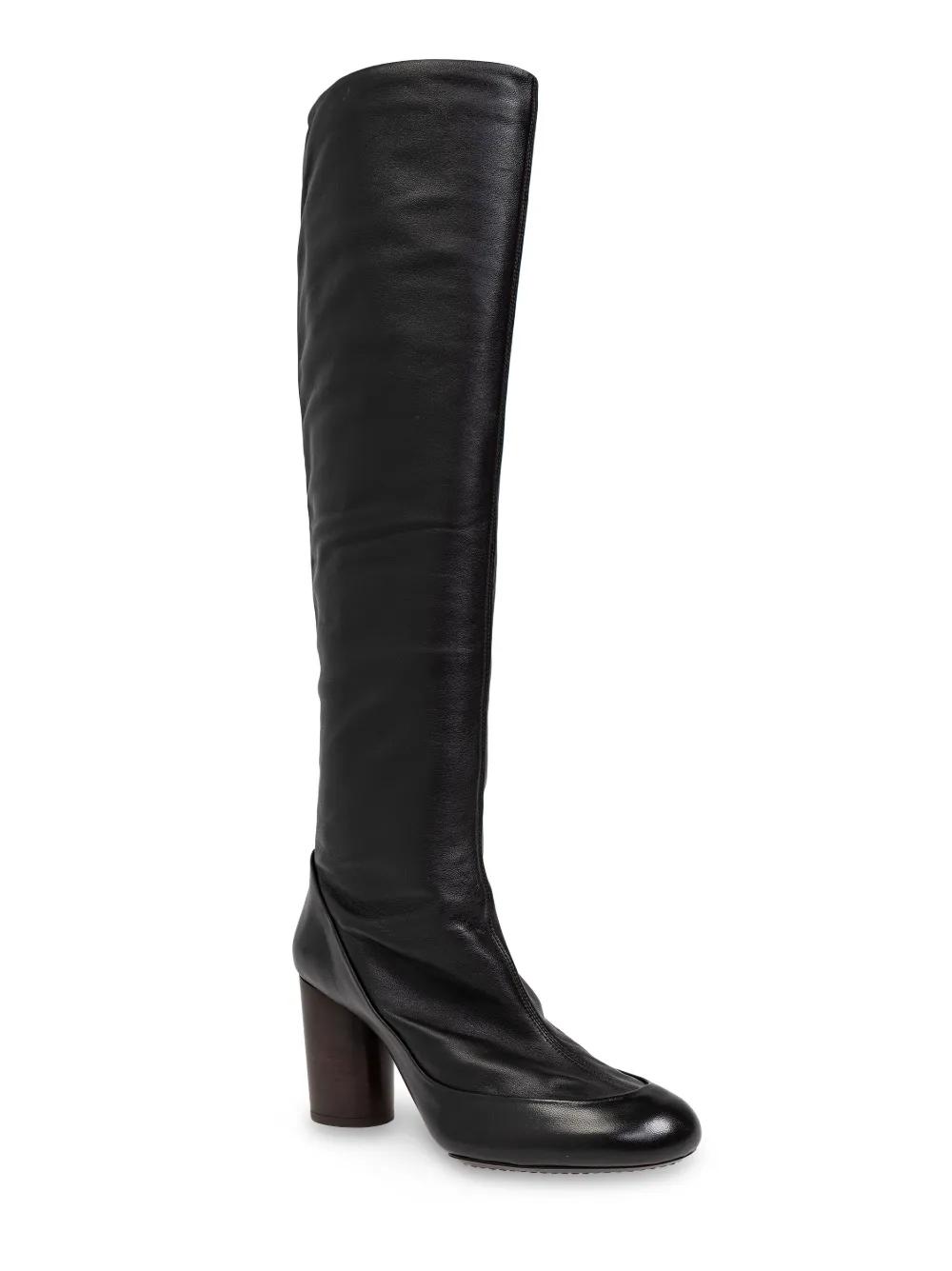 black leather pull-on style knee-high 80mm high block heel round toe branded leather insole leather outsole